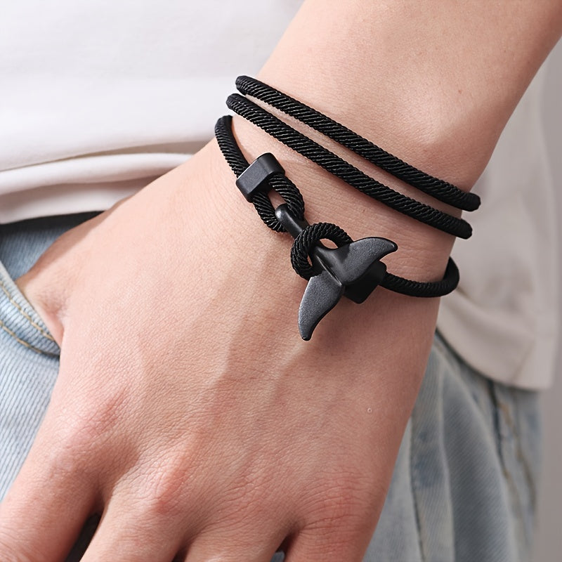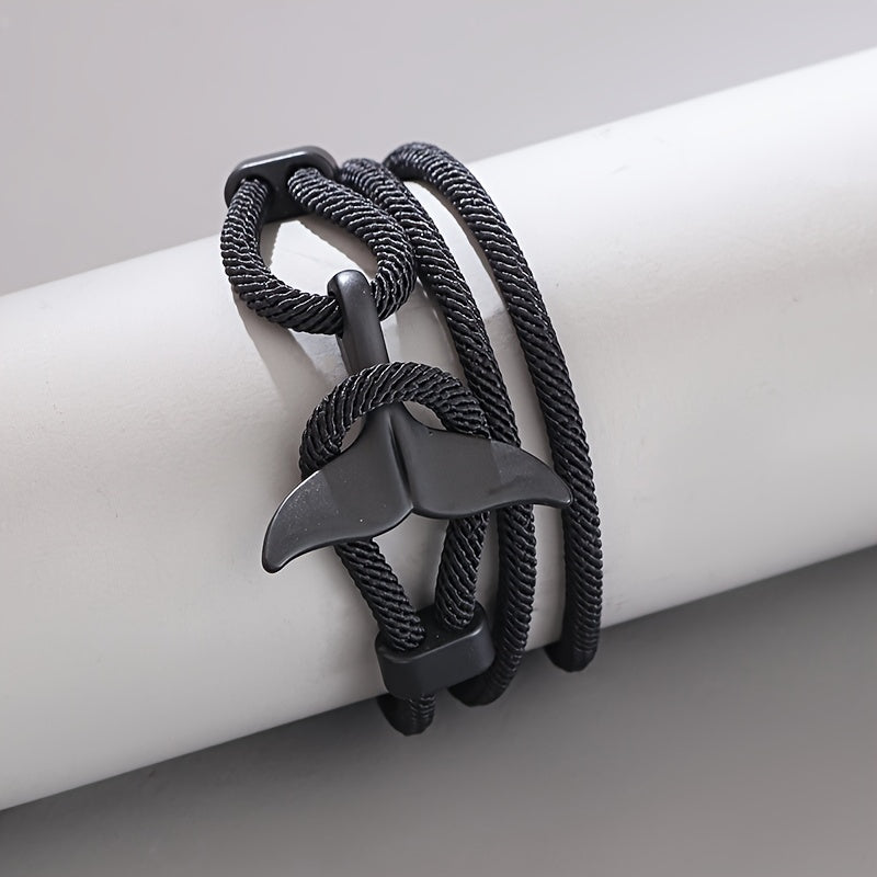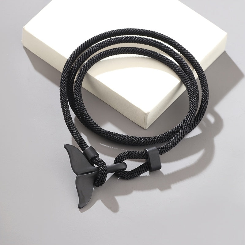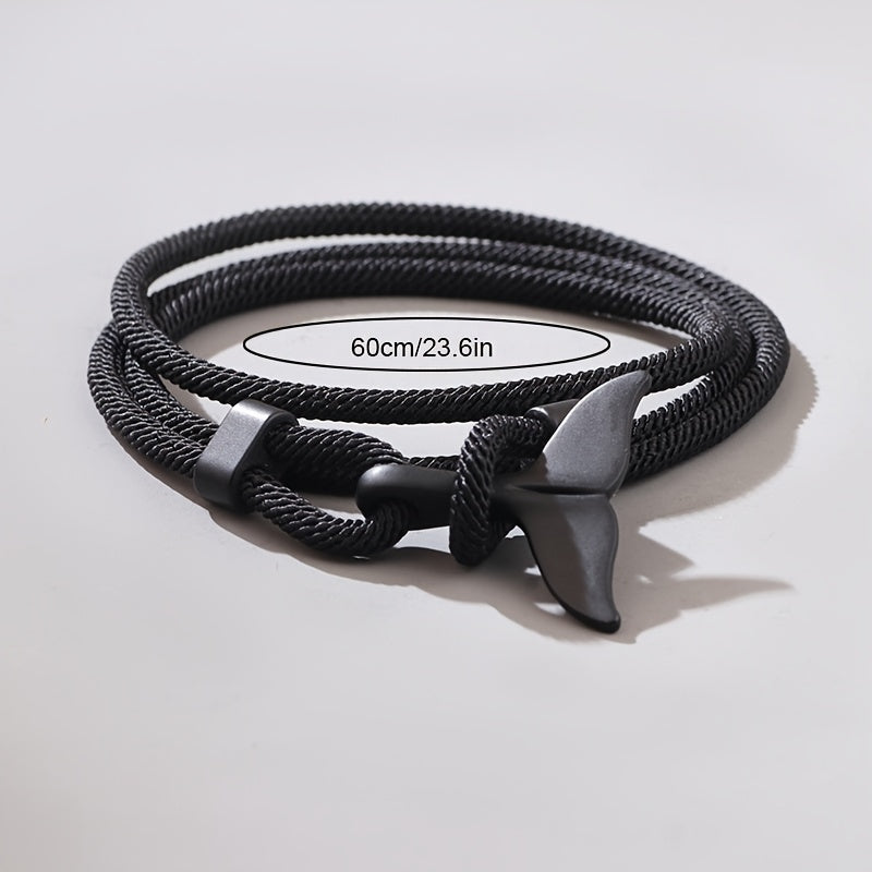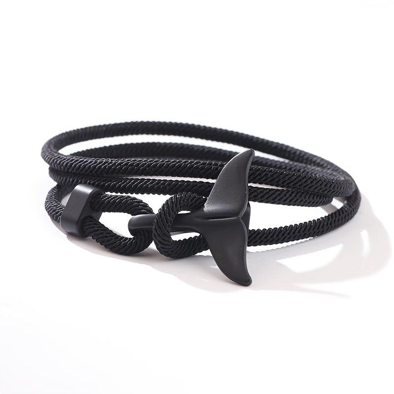 This stylish bracelet features a whale tail design and is intricately braided for a unique look.