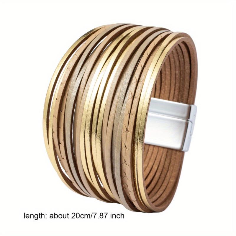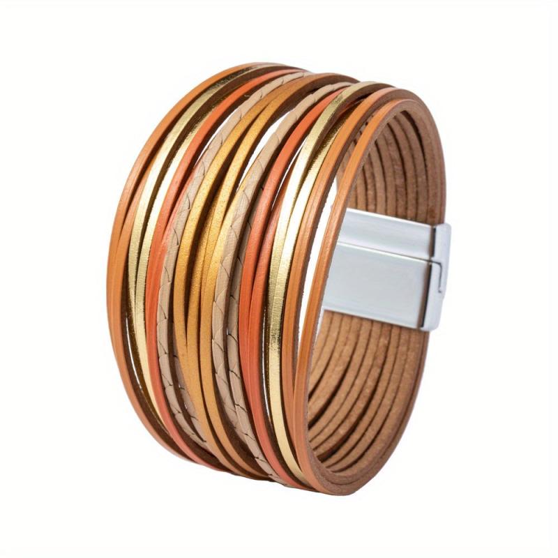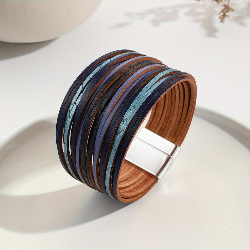 Elevate your style with this boho vintage wide cuff bracelet. Made of gradient faux leather with a magnetic clasp, perfect for daily wear, parties, and Thanksgiving. A versatile accessory for all seasons.