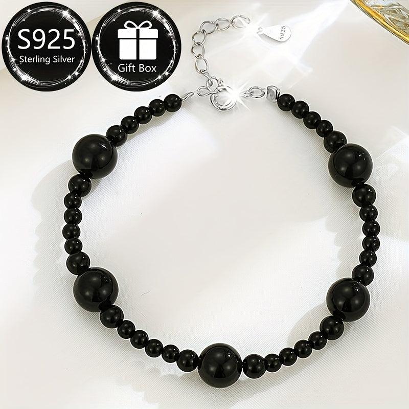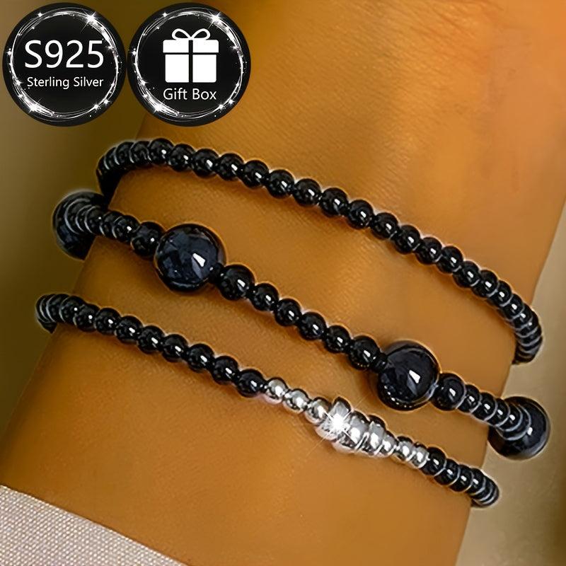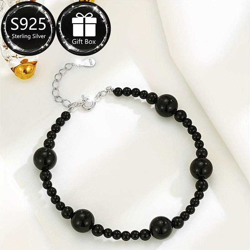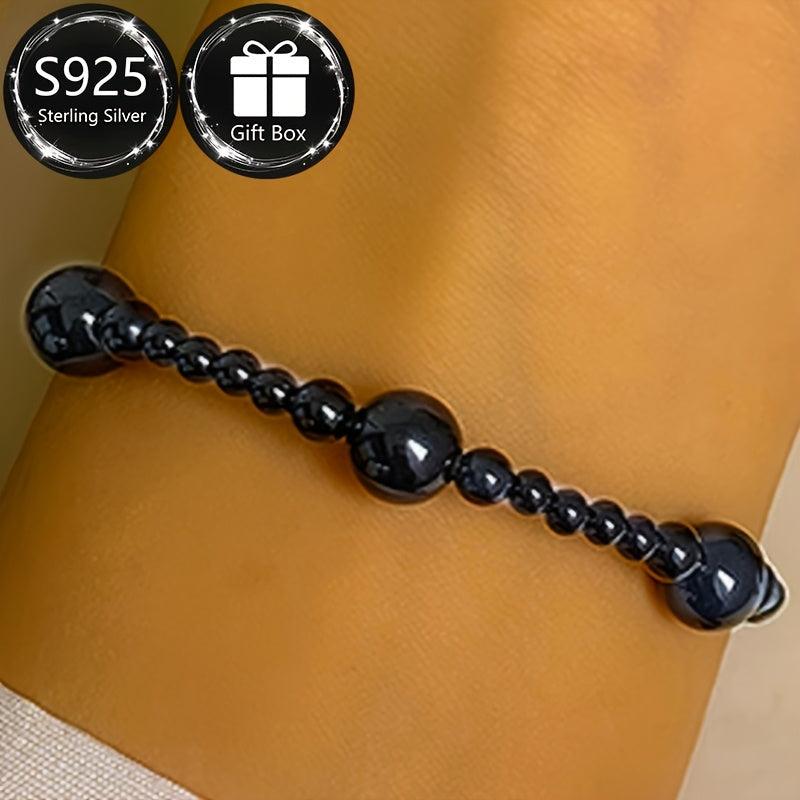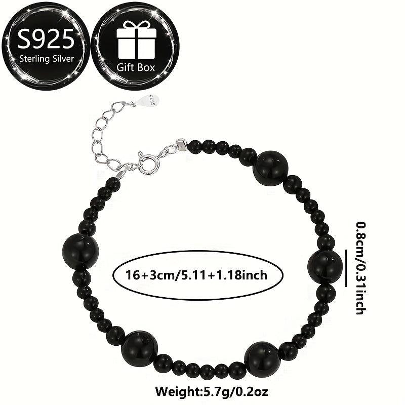Elegant and minimalist bracelet perfect for Spring and Summer. Features natural stone beads in a Middle Eastern ethnic design with 925 silver. Total weight about 5-7g.