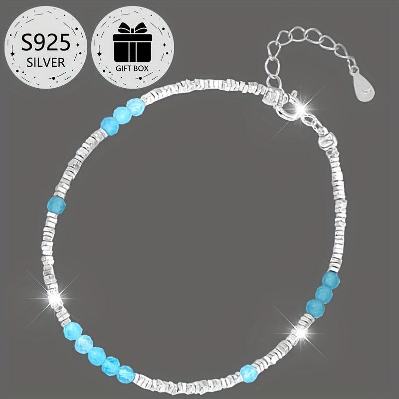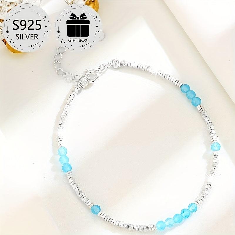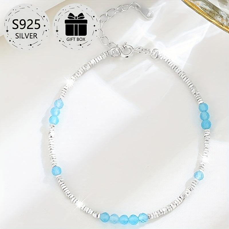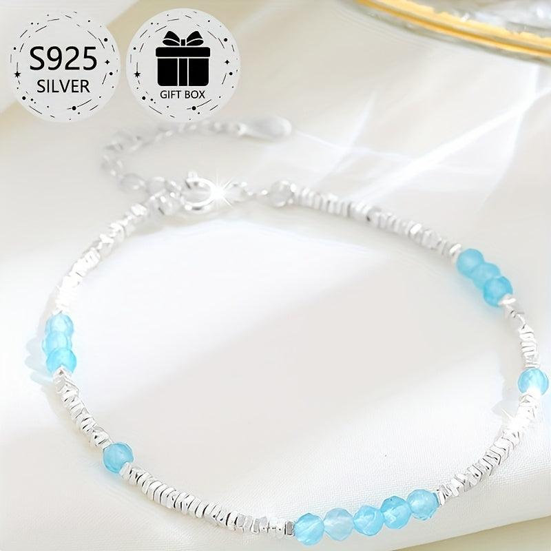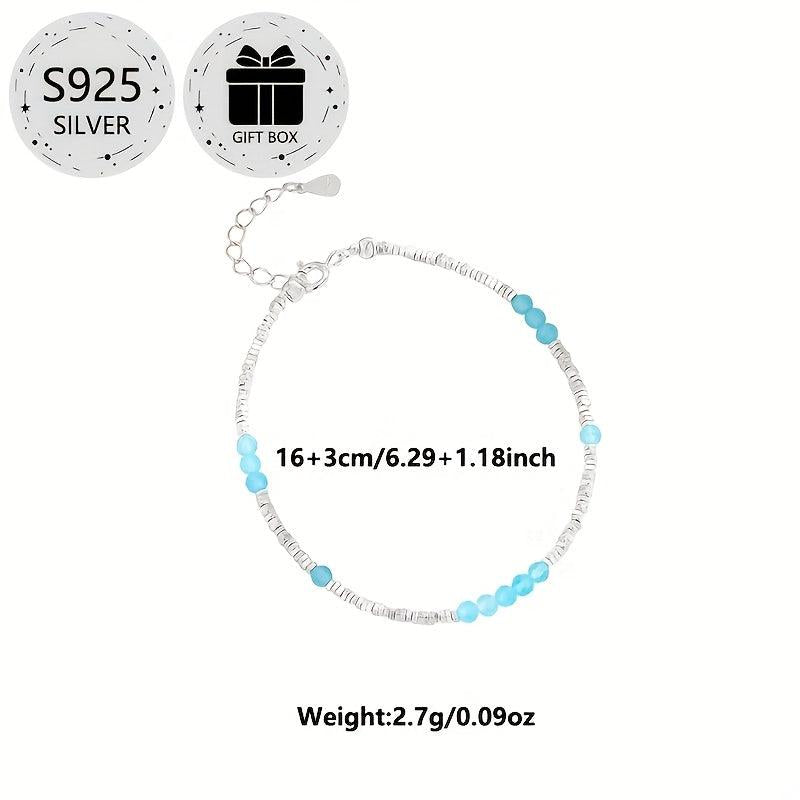 This elegant bracelet features stylish silver charms and natural stone beads. Made from 925 sterling silver, it weighs approximately 2.7g and comes packaged as a gift for your girlfriend.