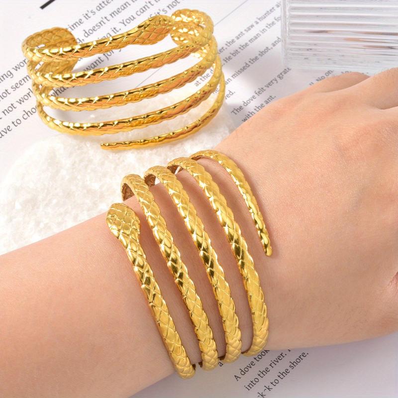 Add a touch of elegance to your outfit with this classic layered snake texture bangle. Perfect accessory for Ramadan, Mother's Day, parties, and weddings.