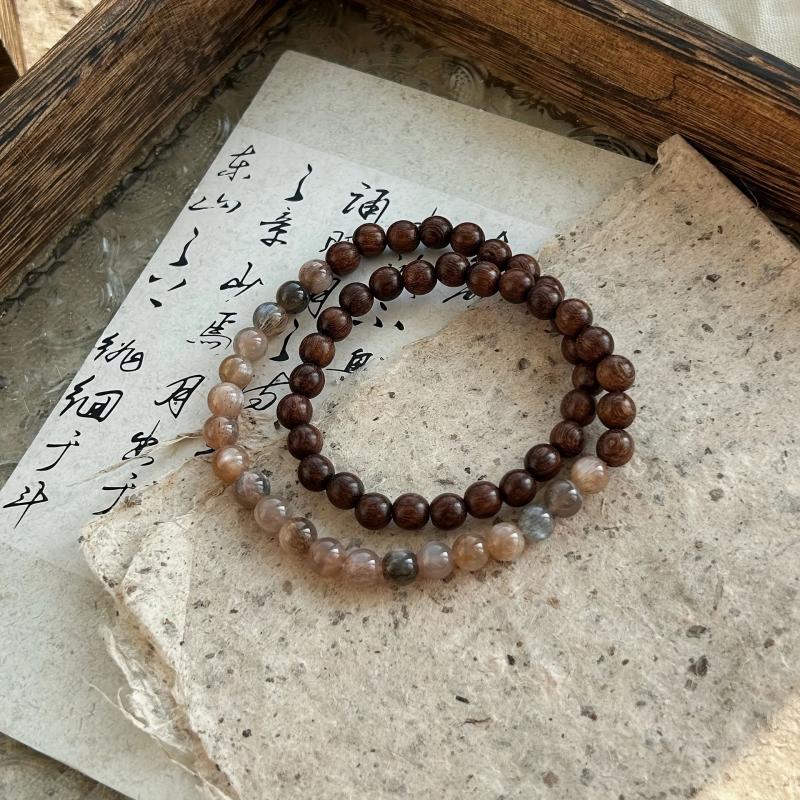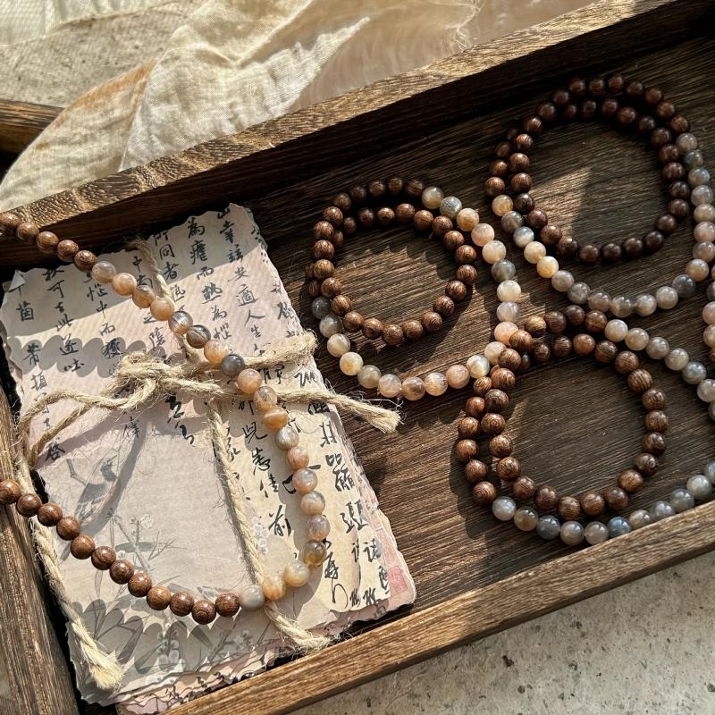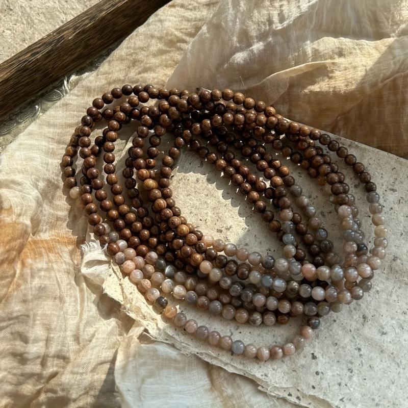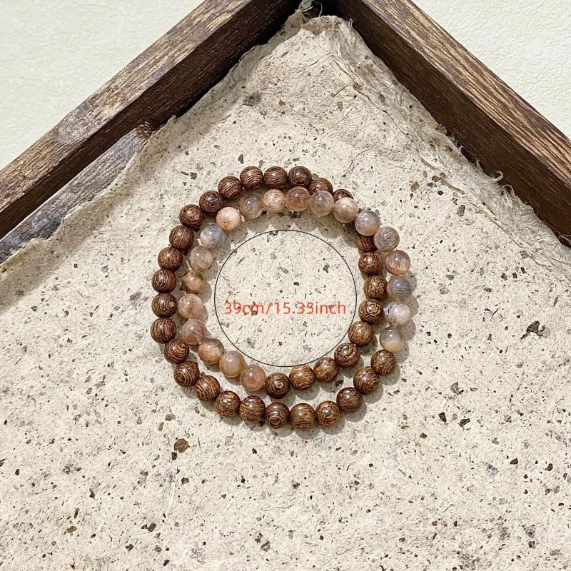 Achieve balance and style with this women's bracelet featuring natural stone beads and sandalwood. The elastic stretch design ensures a comfortable fit.