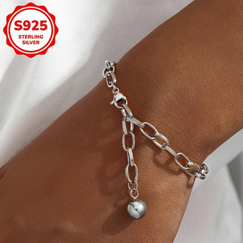 Add a touch of elegance to your look with this minimalist S925 silver bracelet. The thick chain design with a round ball charm makes it a versatile accessory for daily wear and holidays.
