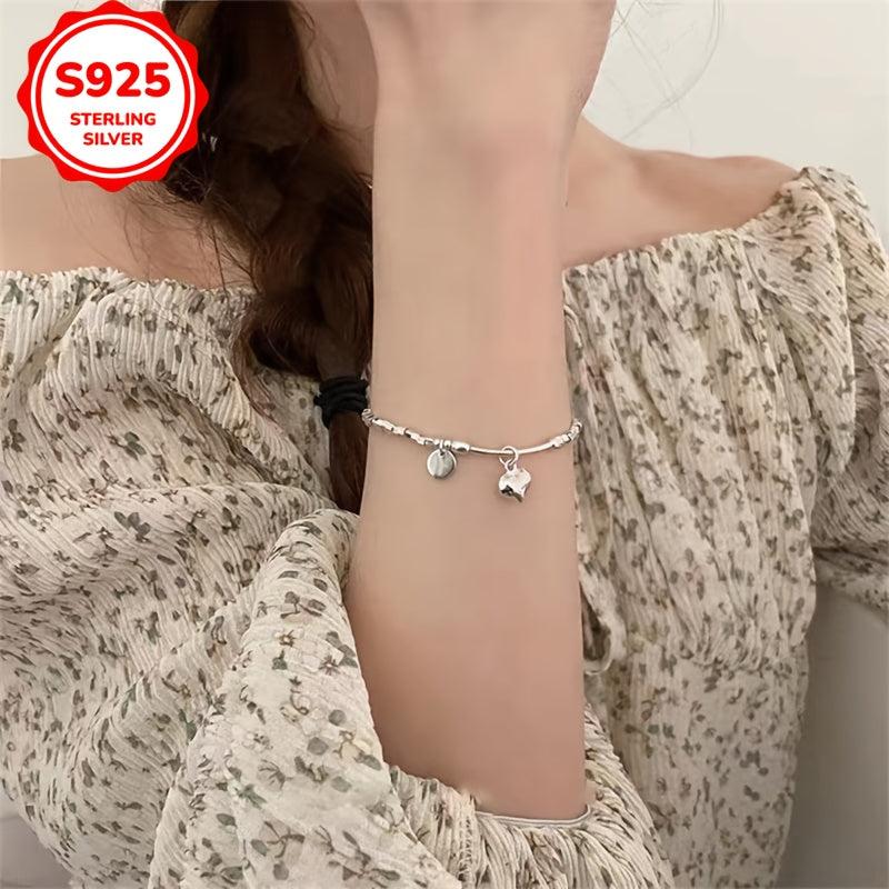 This fashionable bracelet is the perfect gift for daily wear or vacation. The S925 silvery square design with a broken money heart pendant adds a stylish touch to any outfit.