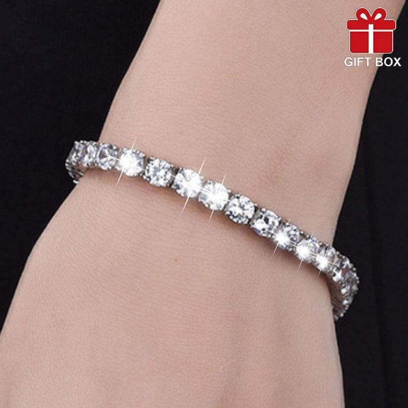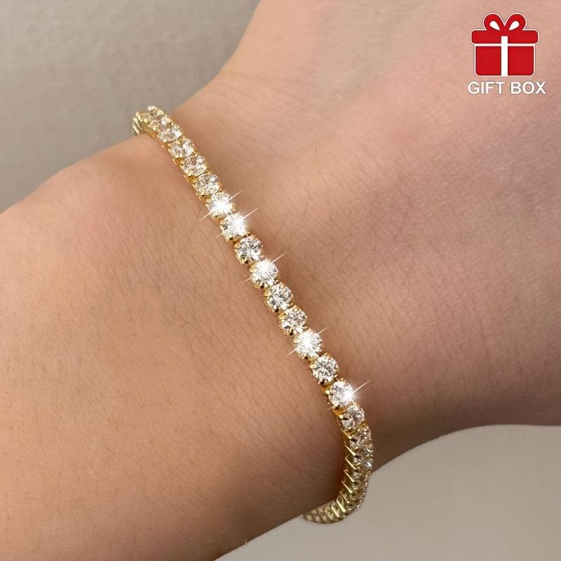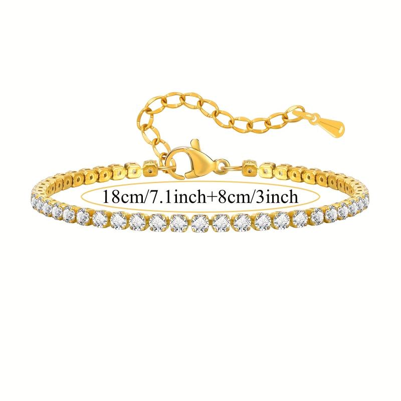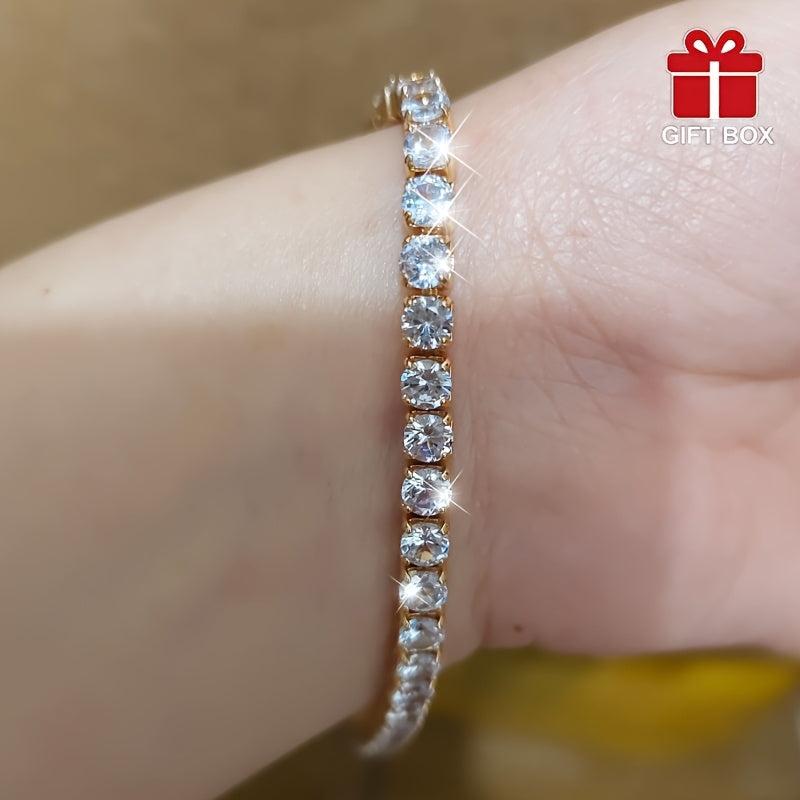 This stunning bracelet features synthetic cubic zirconia set in a gorgeous golden tone metal chain. It is a perfect accessory for daily wear and comes with a jewelry bag for safekeeping.