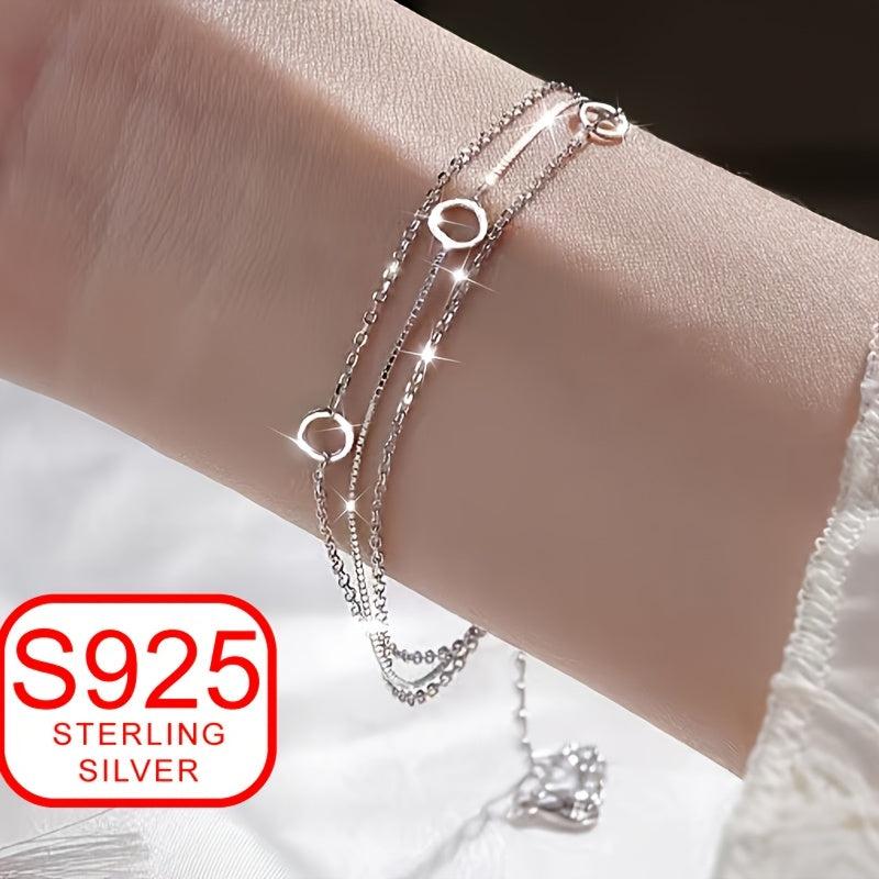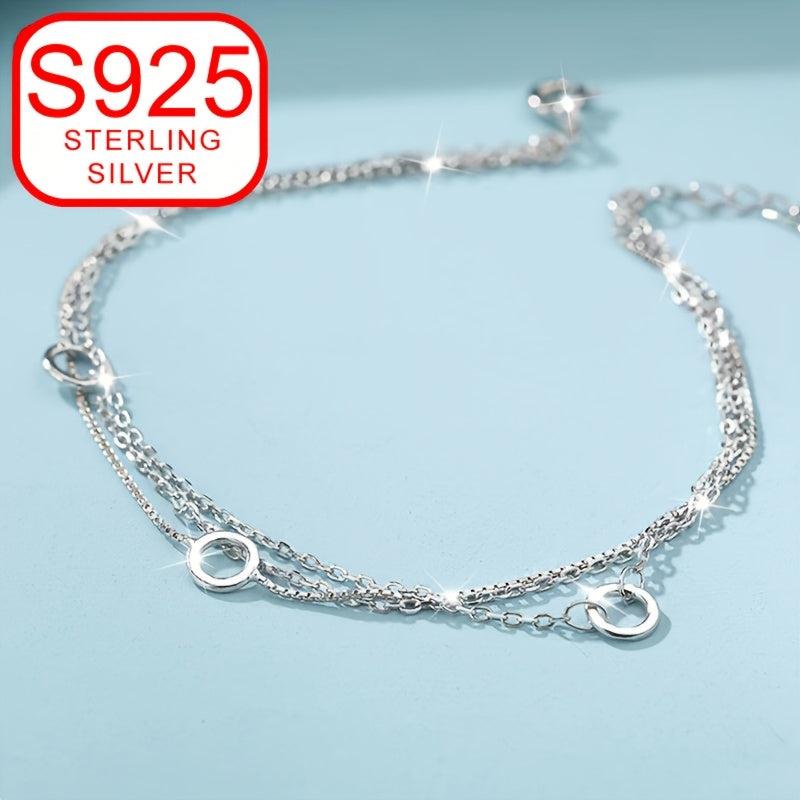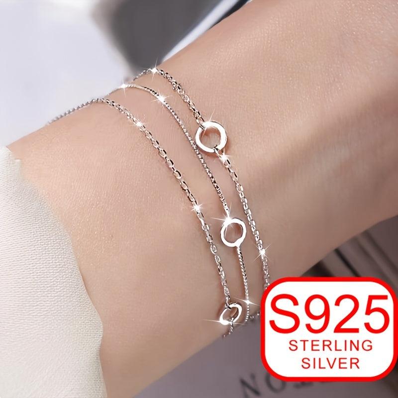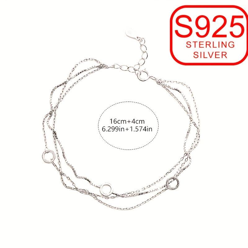 Elevate your style with this stunning three-layer circle bracelet. Made from 925 silver, this bracelet is perfect for a summer beach look. It is low-allergy and versatile, adding a touch of elegance to any outfit.