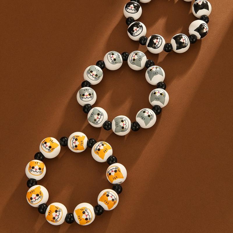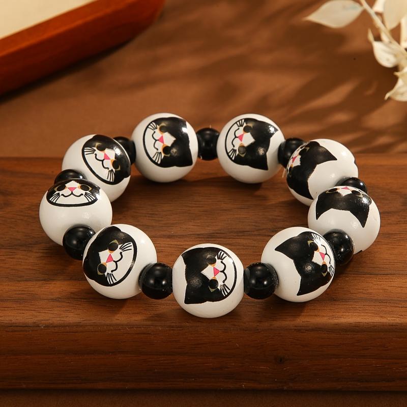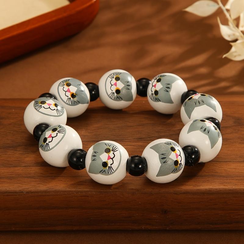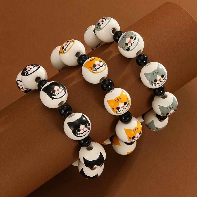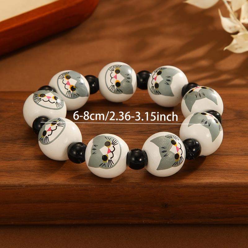 Add a playful touch with this Y2K style cat print wooden bead stretch bracelet. Perfect for daily wear or as a birthday gift for women.