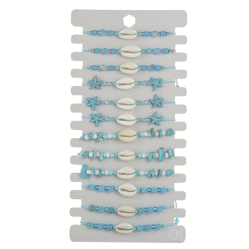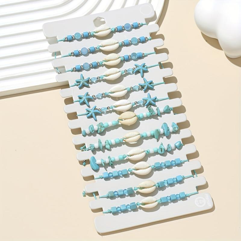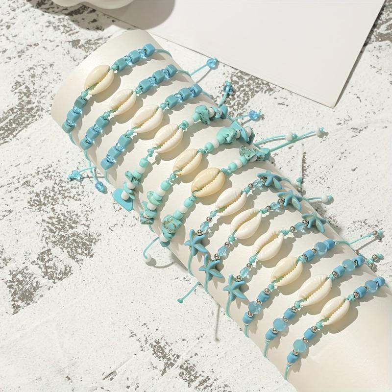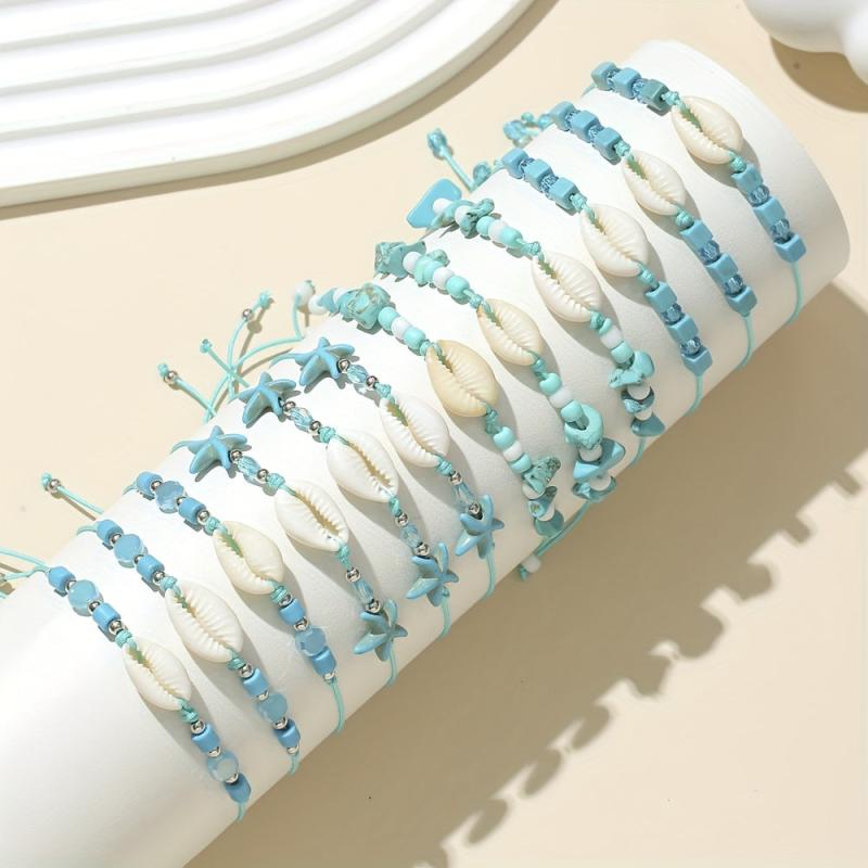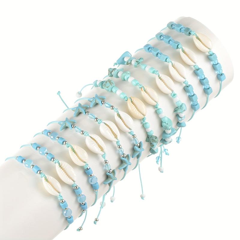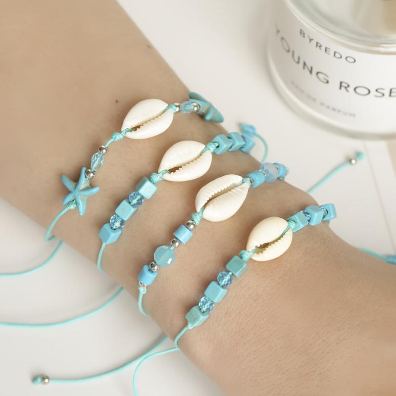 Embrace beach vibes with this Y2K bracelet set featuring shell and starfish charms. The adjustable rope weaving adds a touch of ocean theme to your look.