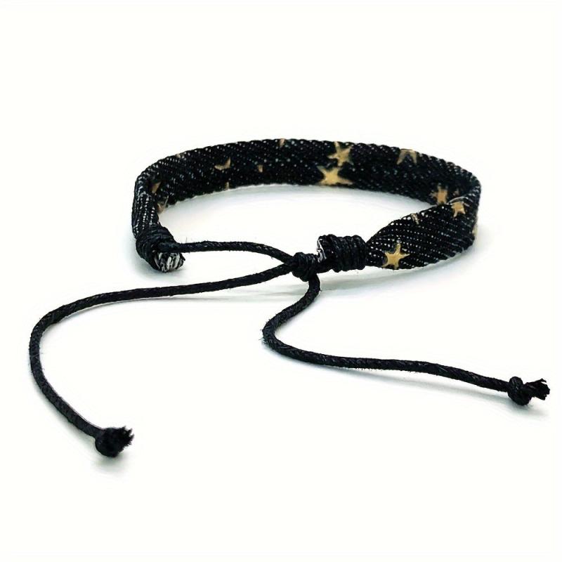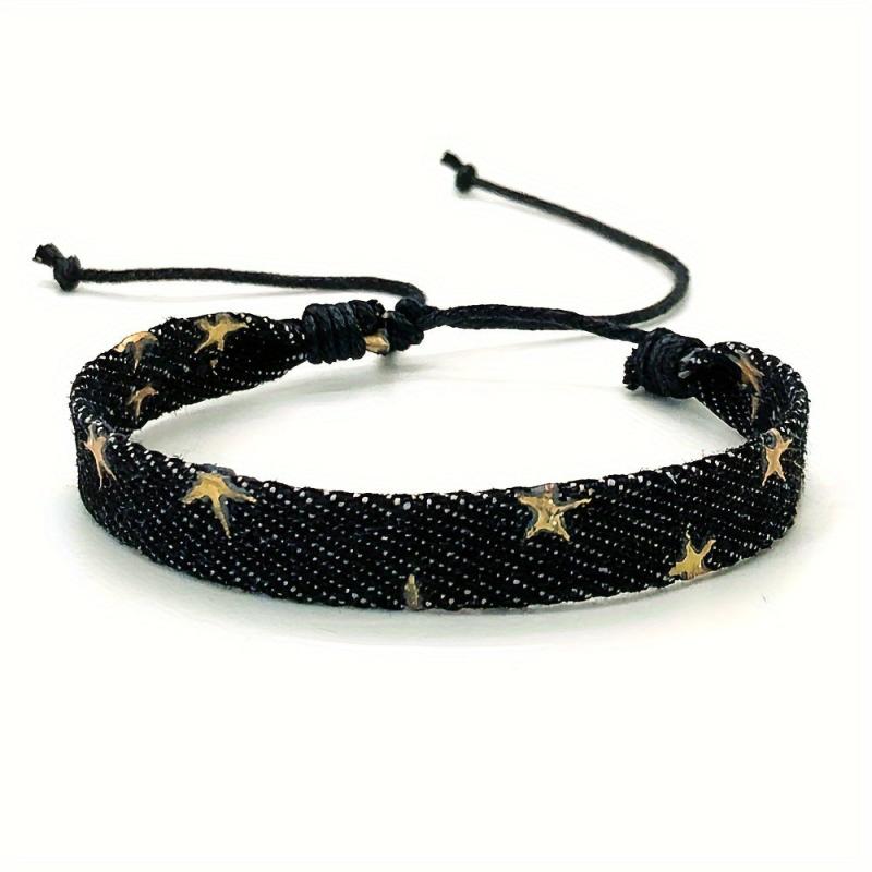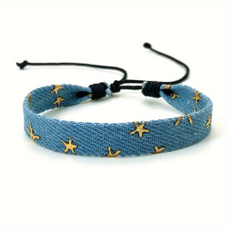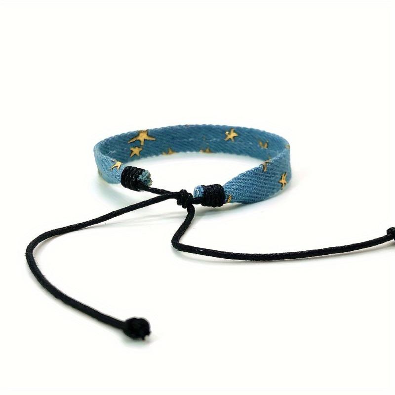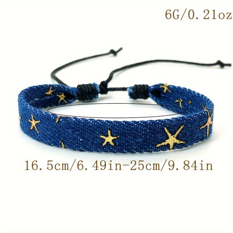 Add a touch of minimalist Y2K charm to your look with this denim and woven bracelet set. Featuring a star accent, these bracelets are perfect for women who love retro-inspired accessories.