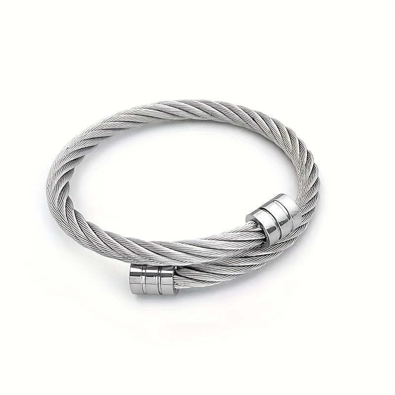 This Yunjin bracelet is made of titanium steel wire with an elastic opening. It's a stylish accessory for hip hop and punk styles.