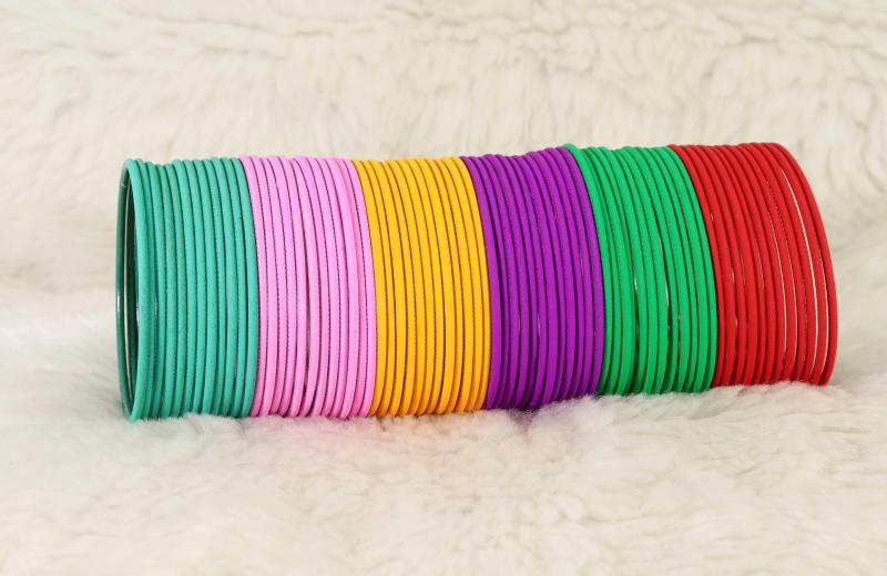 This pack includes 144 glossy finished bangles with a base and zig-zag curved pattern. The bangles are made of non-precious metal and are perfect for girls.