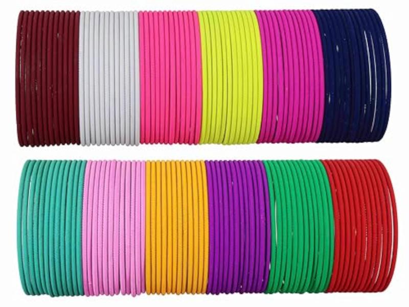These bangles are crafted from non-precious metal and feature a base with a zig-zag curved pattern in a glossy finish. Ideal for girls, each set contains 144 bangles.