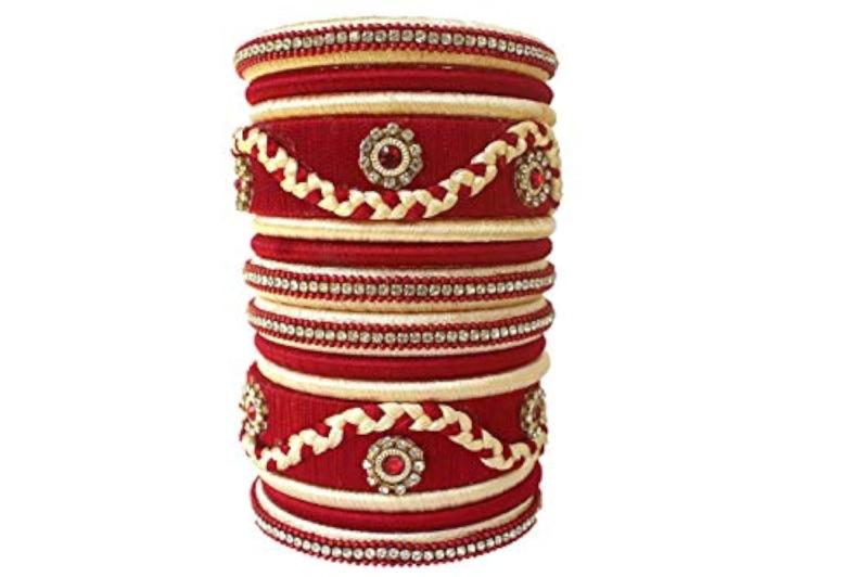 Complete your look with this set of 14 zig-zag weaving silk bangles. These bangles are perfect for matching with your dress. Size 2/4.