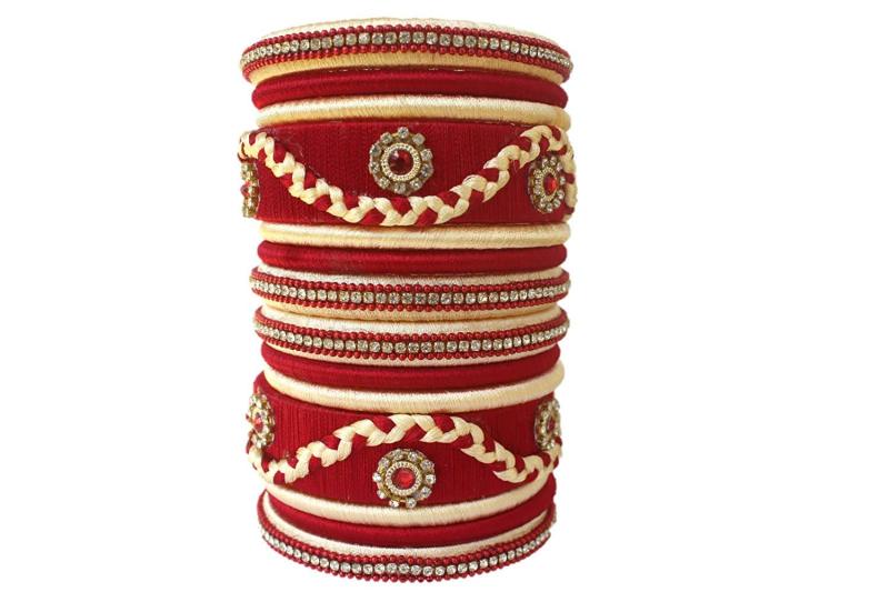 Complete your outfit with this set of 14 zig-zag silk bangles, perfect for adding a touch of elegance to your look.