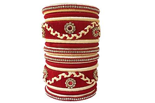 Elevate your style with this set of 14 silk bangles featuring a trendy zig-zag weaving pattern. Perfect for matching with your favorite dress.