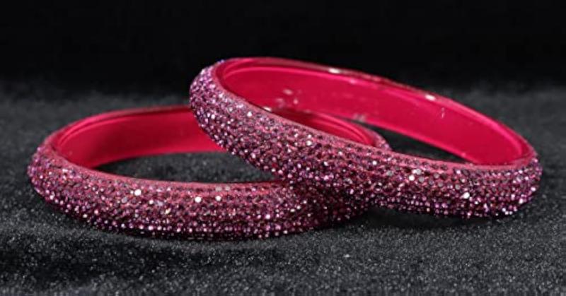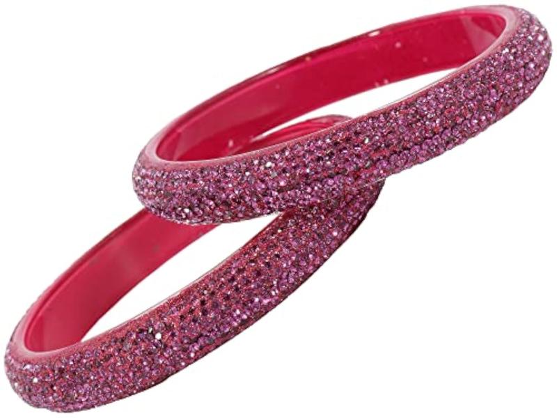Elegant kada set made with glass and adorned with zircon gemstones and glitter. Pack of 2 kadas in the set.