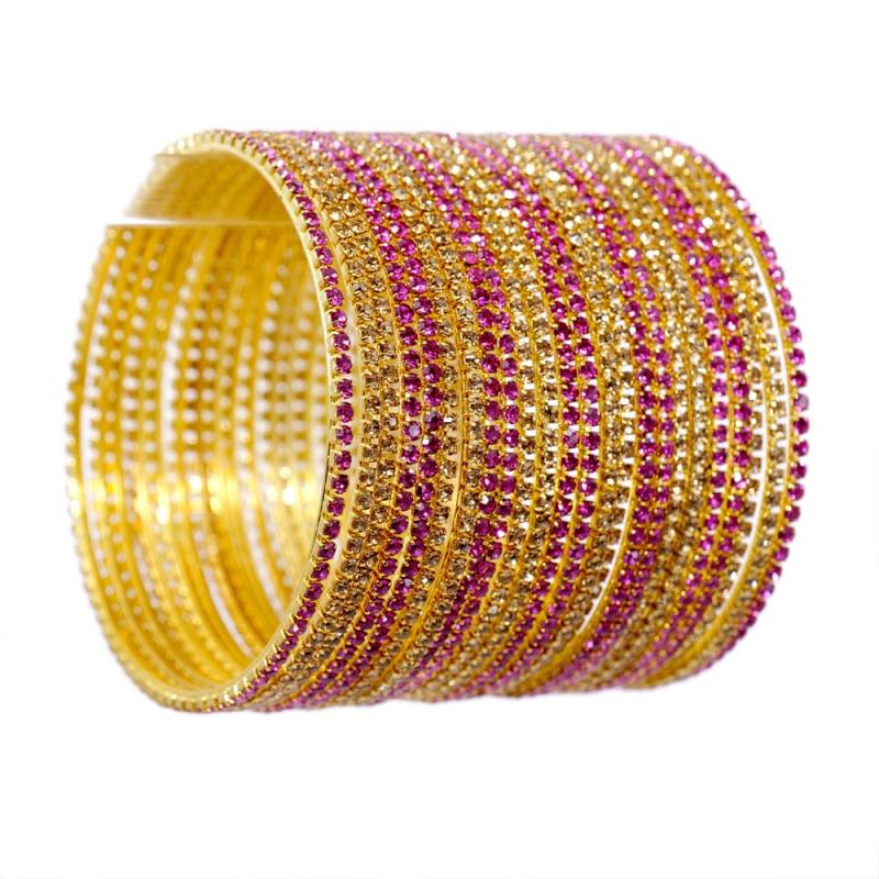Elegant bangle set with zircon gemstones on non-precious metal base. Glossy finish adds a touch of glamour. Perfect for women and girls.