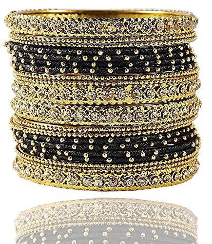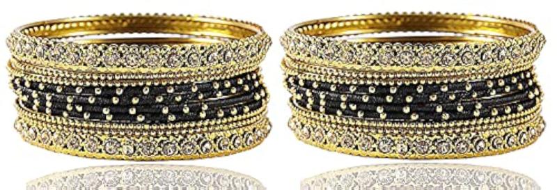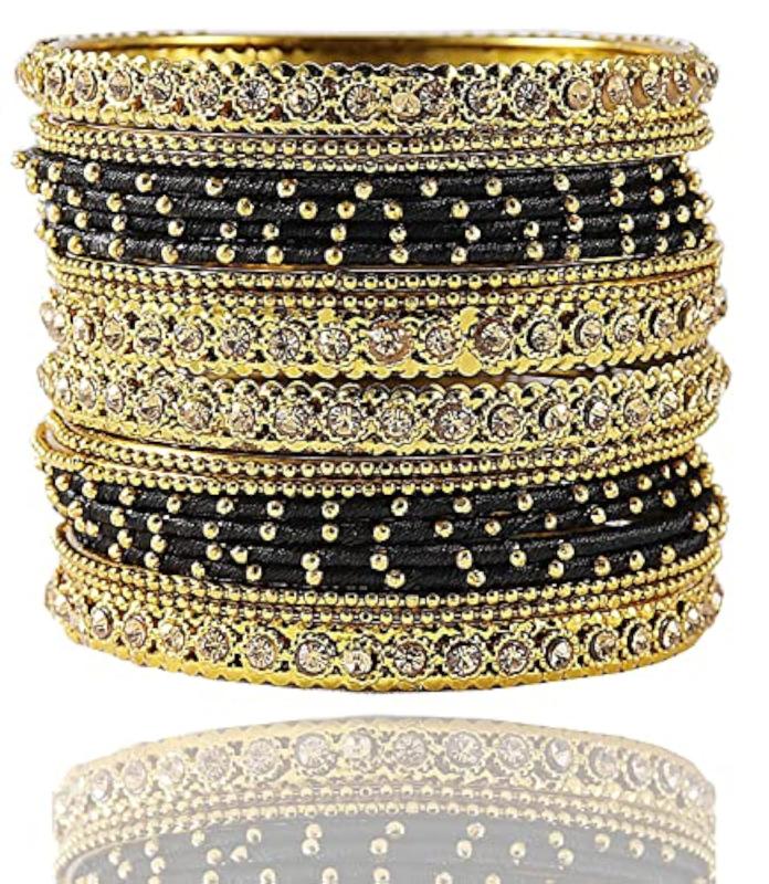 Glossy finished bangle set featuring zircon gemstone studded ball chain design for girls.