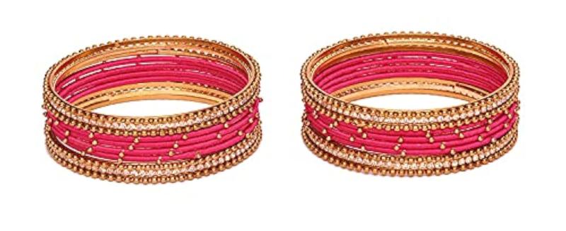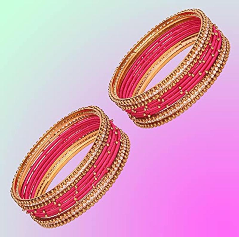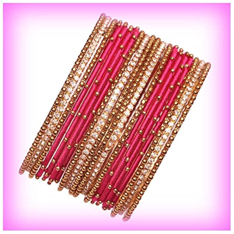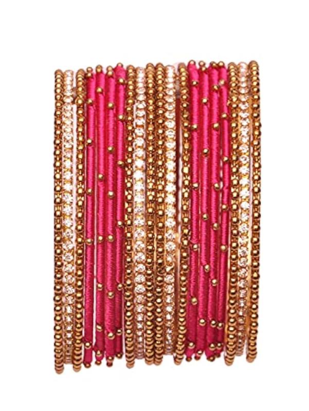 Girls' bangle set with zircon gemstone studded work, made of non-precious metal base with silk thread or ball chain, size 2.4 inches