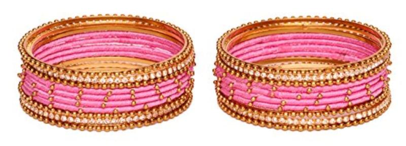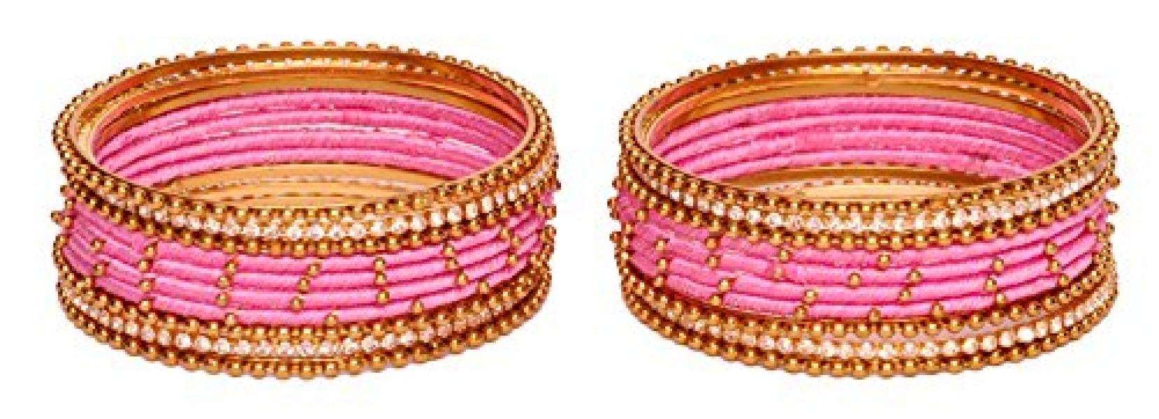 Set of 20 bangles featuring zircon gemstone studded design on non-precious metal base with silk thread or ball chain. Perfect for young girls with a wrist size of 2.6 inches.