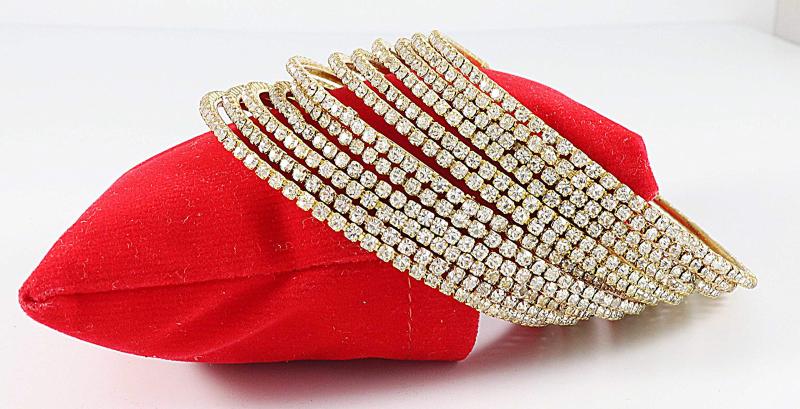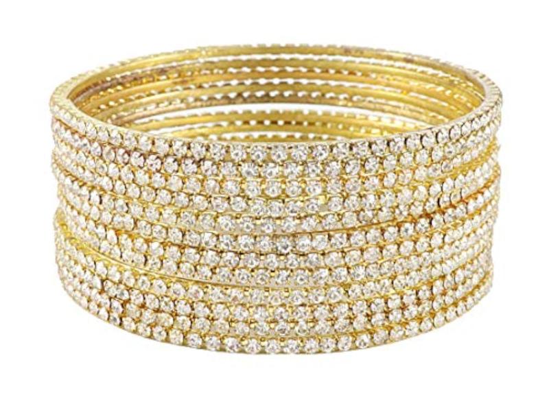 Elegant bangle set with zircon gems in glossy finish. Made of non-precious metal. Perfect for women and girls. Size: 2.8 inches.