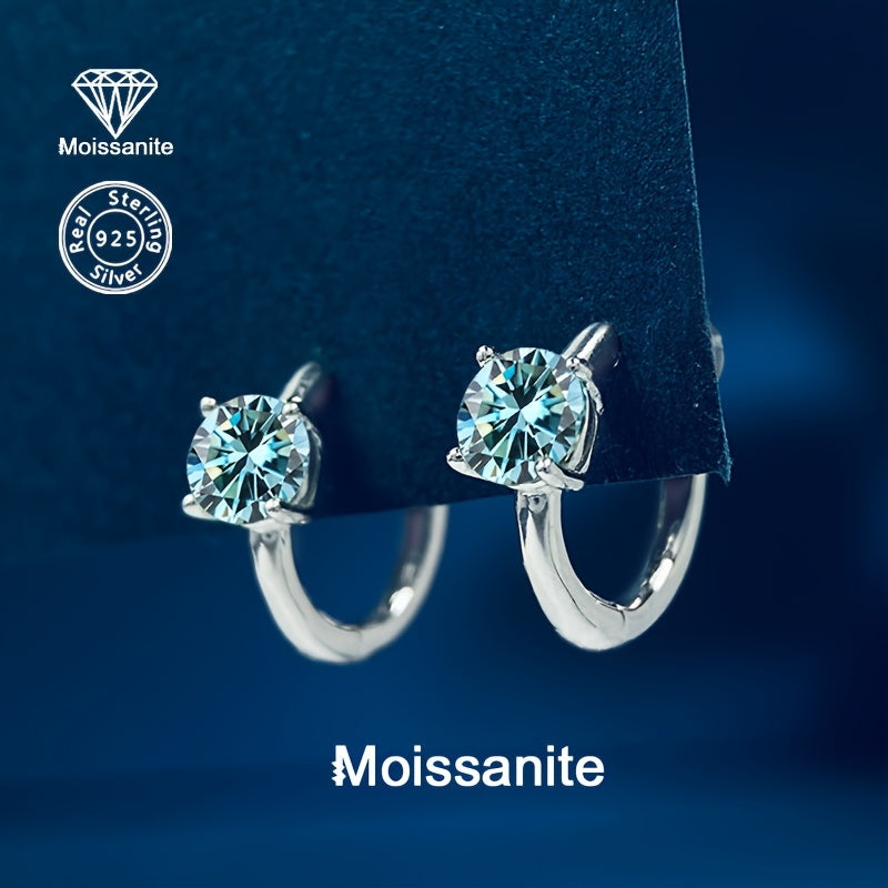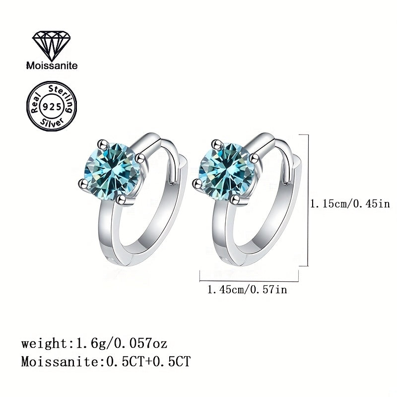 Elegant and fashionable women's earrings featuring 1 carat of colorful Moissanite in a round circle design, perfect for daily wear or special occasions like birthdays, Christmas, Thanksgiving, or New Year's celebrations.