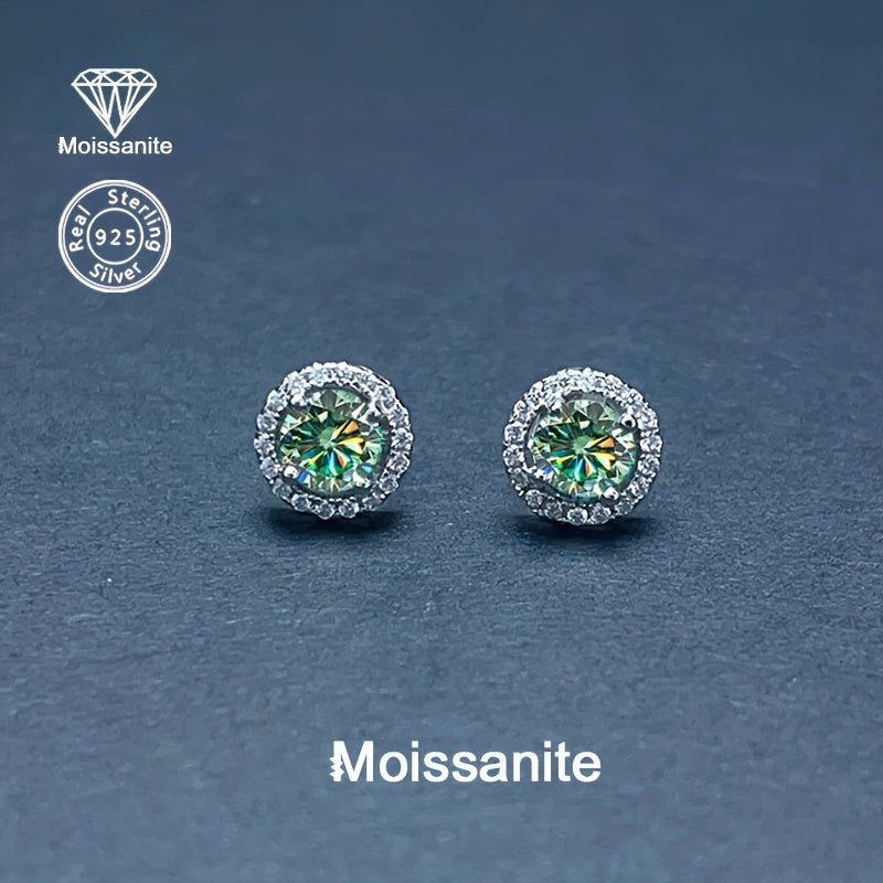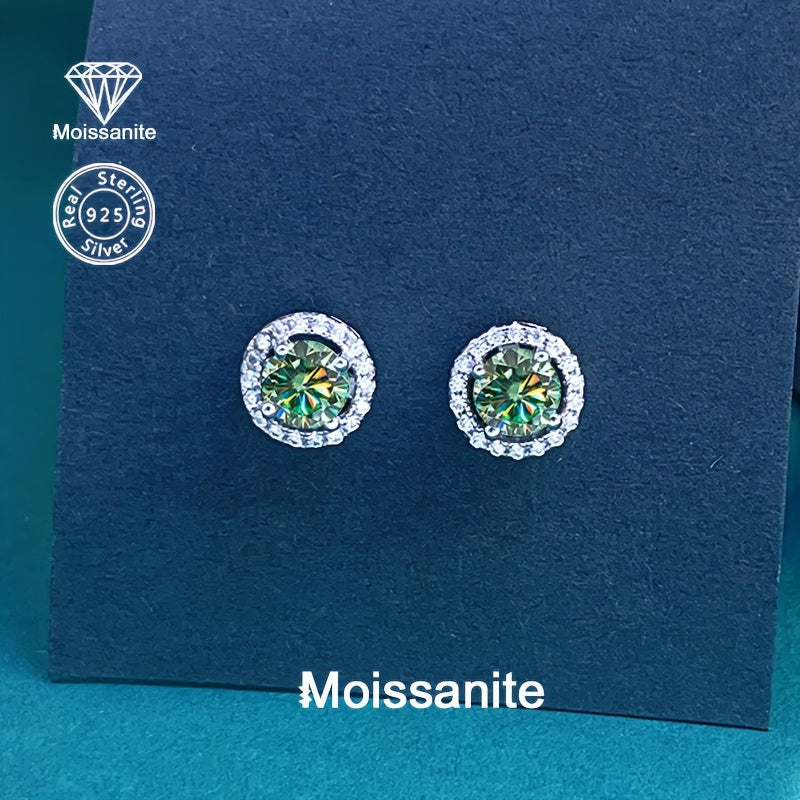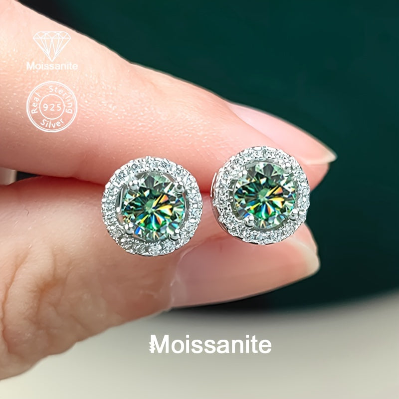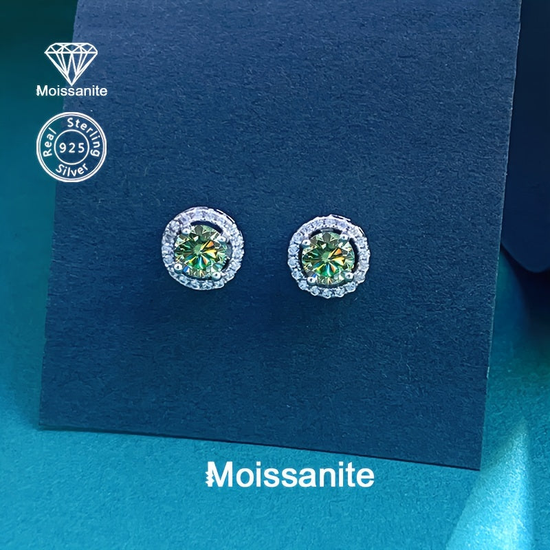 These stunning 1 carat green moissanite silver stud earrings are a timeless classic gift suitable for any occasion. Crafted in 925 silver, these round studs are elegant and versatile.