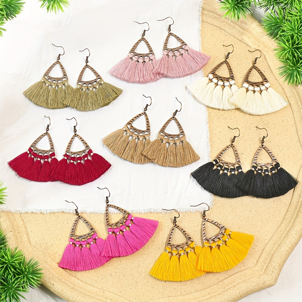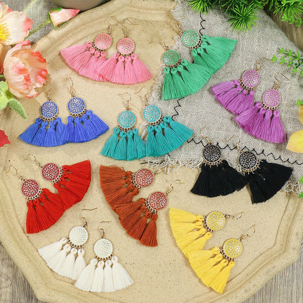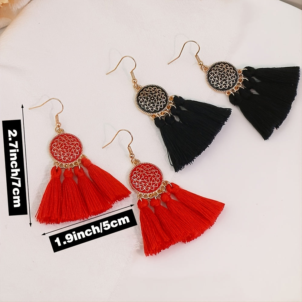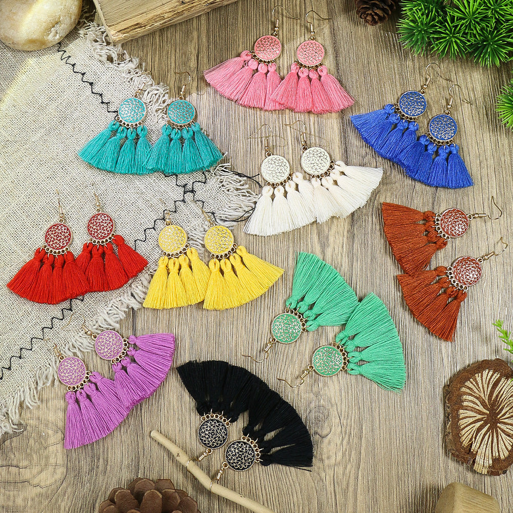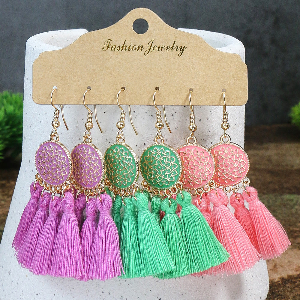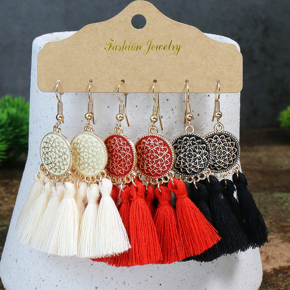 Add a touch of elegance with this 10 pairs combo set of earrings featuring polka dot, flower, and tassel charms in various colors.