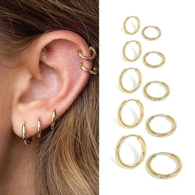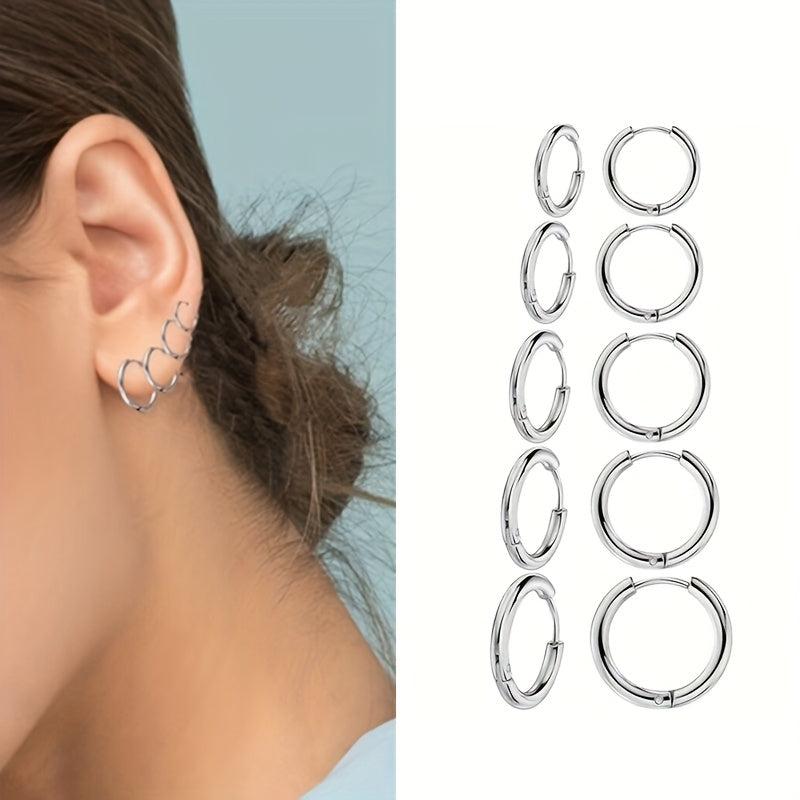 This set includes mini circle studs and a bracelet, perfect for multiple piercings. Hypoallergenic and suitable for everyday wear.