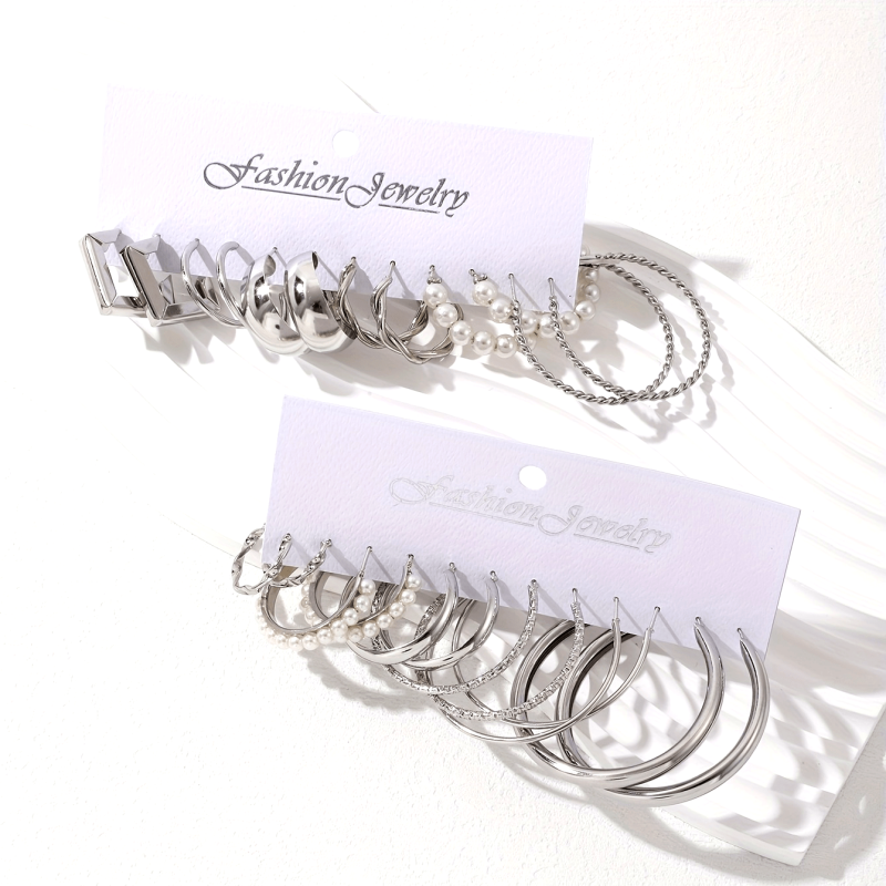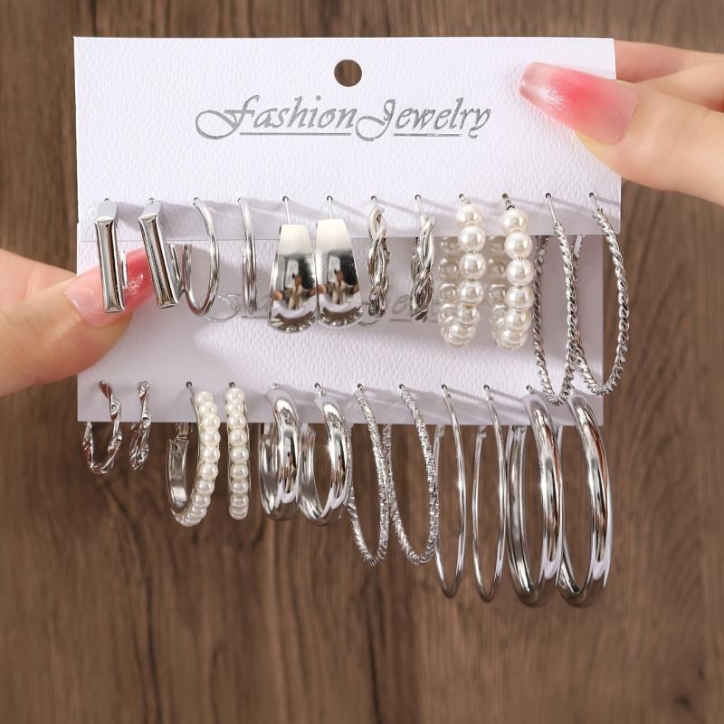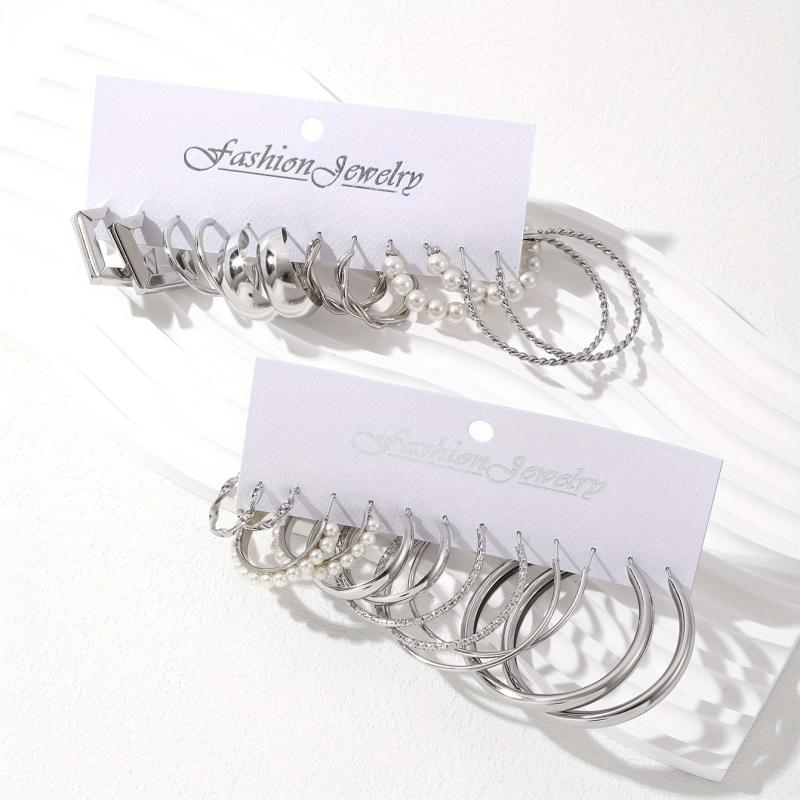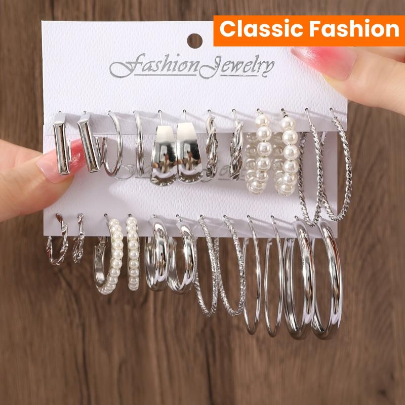 Get this set of 12 pairs of classic C ring ladies' earrings for the holiday season. Perfect for couples or girls who love jewelry.