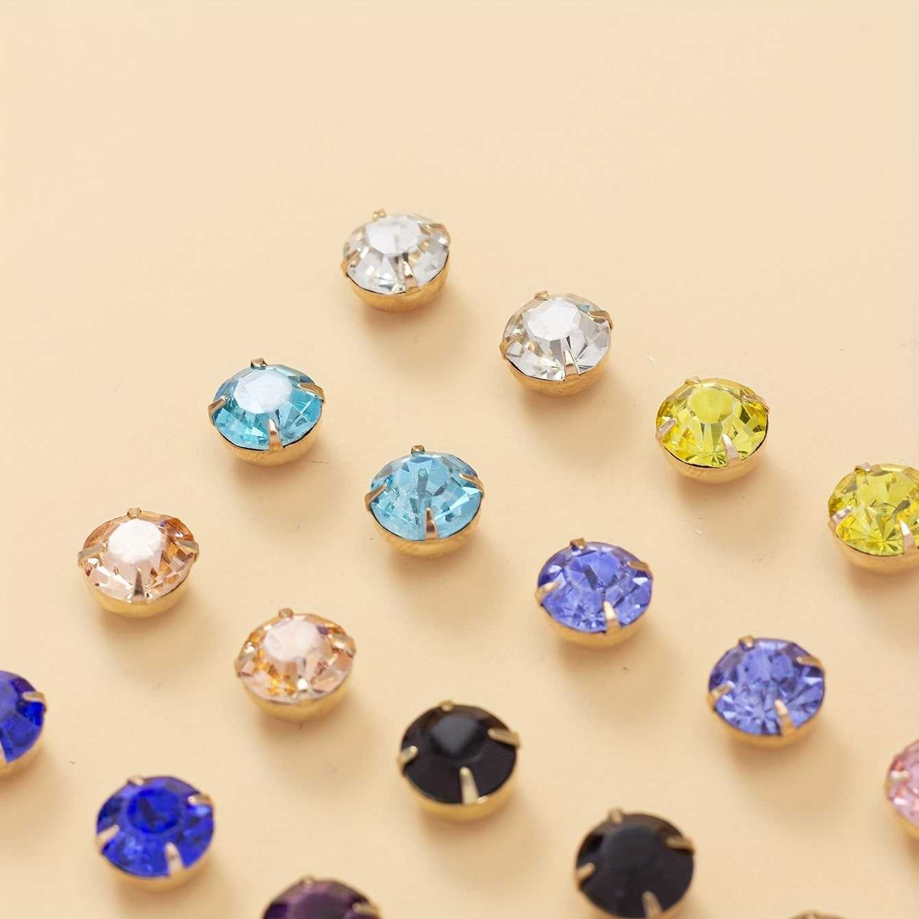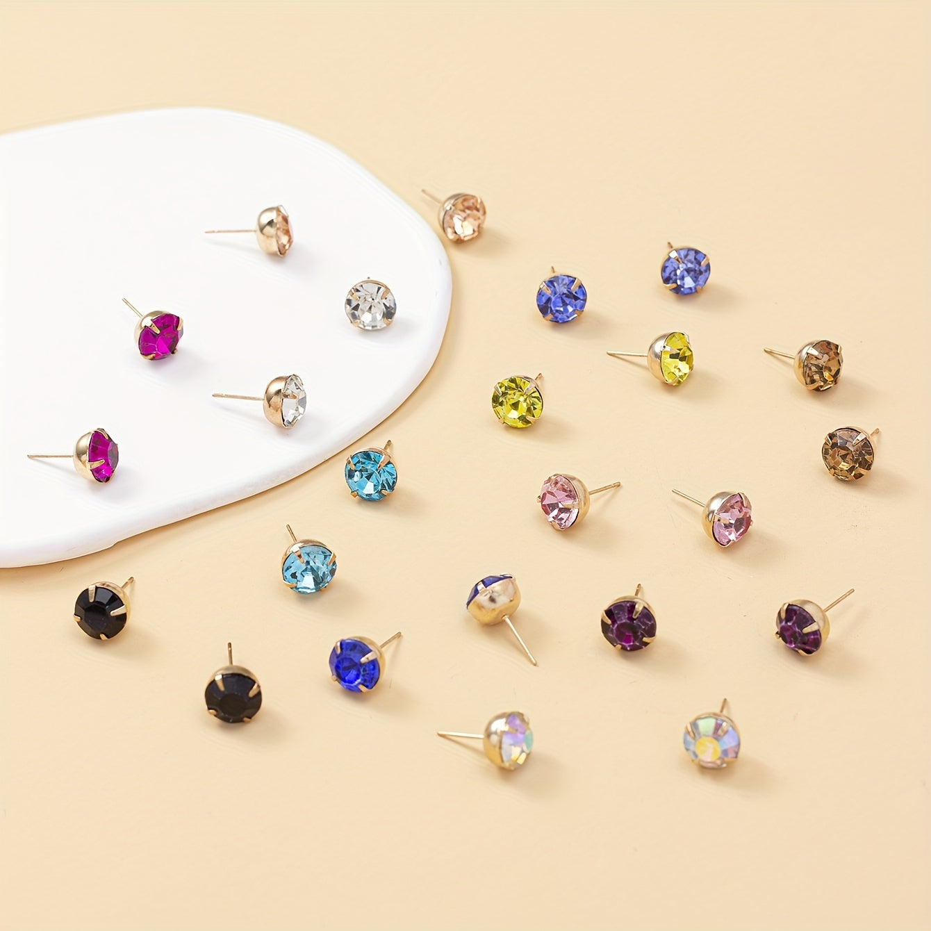 Add a pop of color and sparkle to your daily look with these stunning stud earrings. Made with stainless steel and colorful rhinestones, these earrings are perfect for everyday wear.