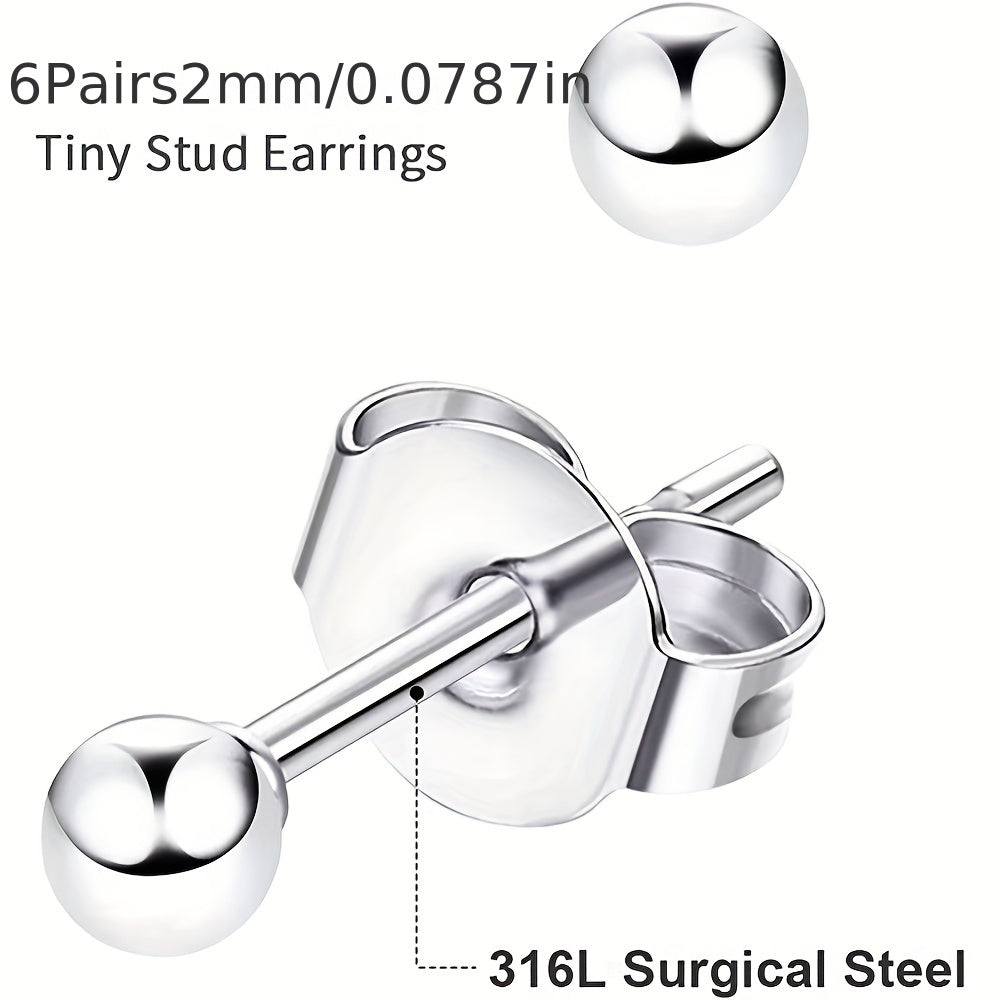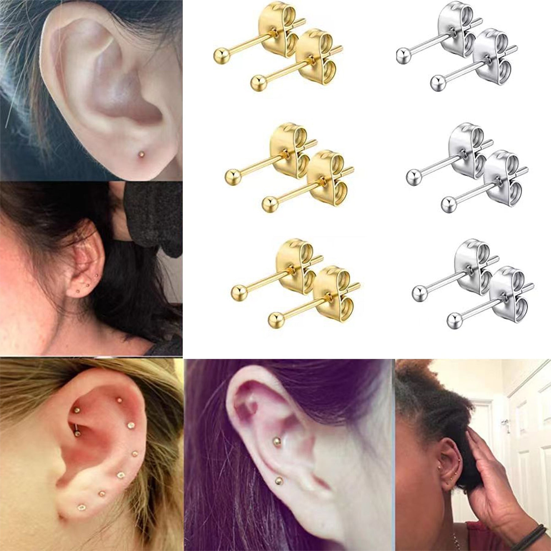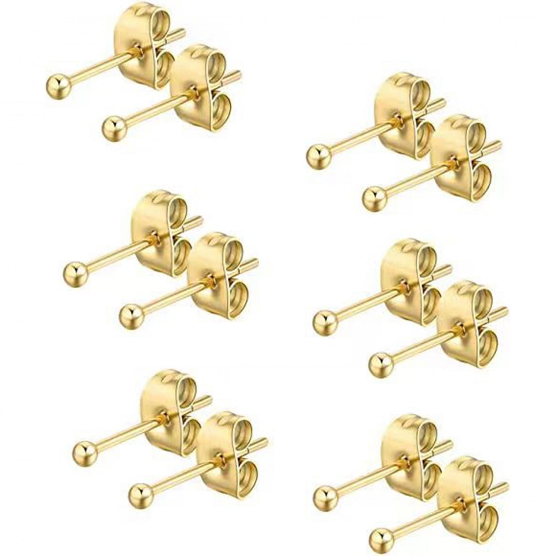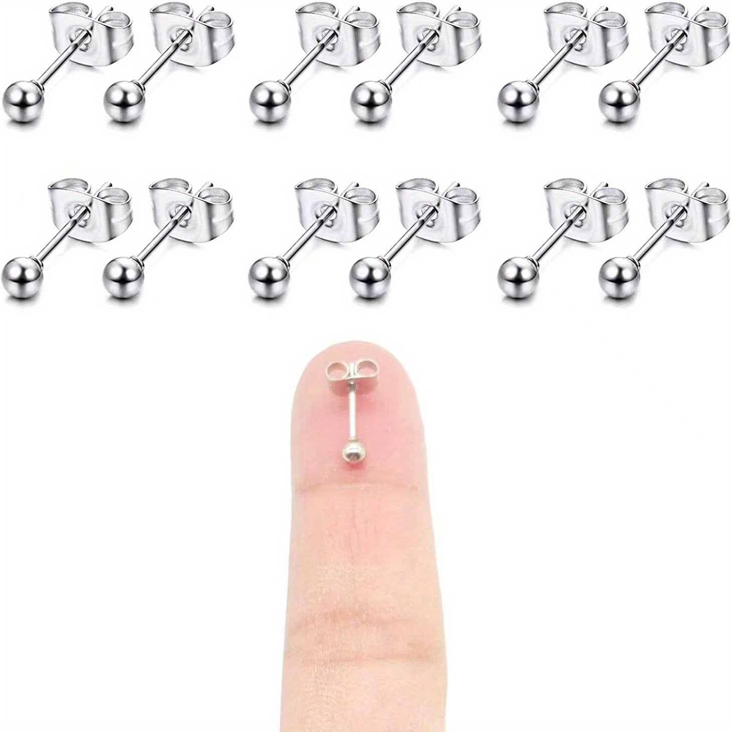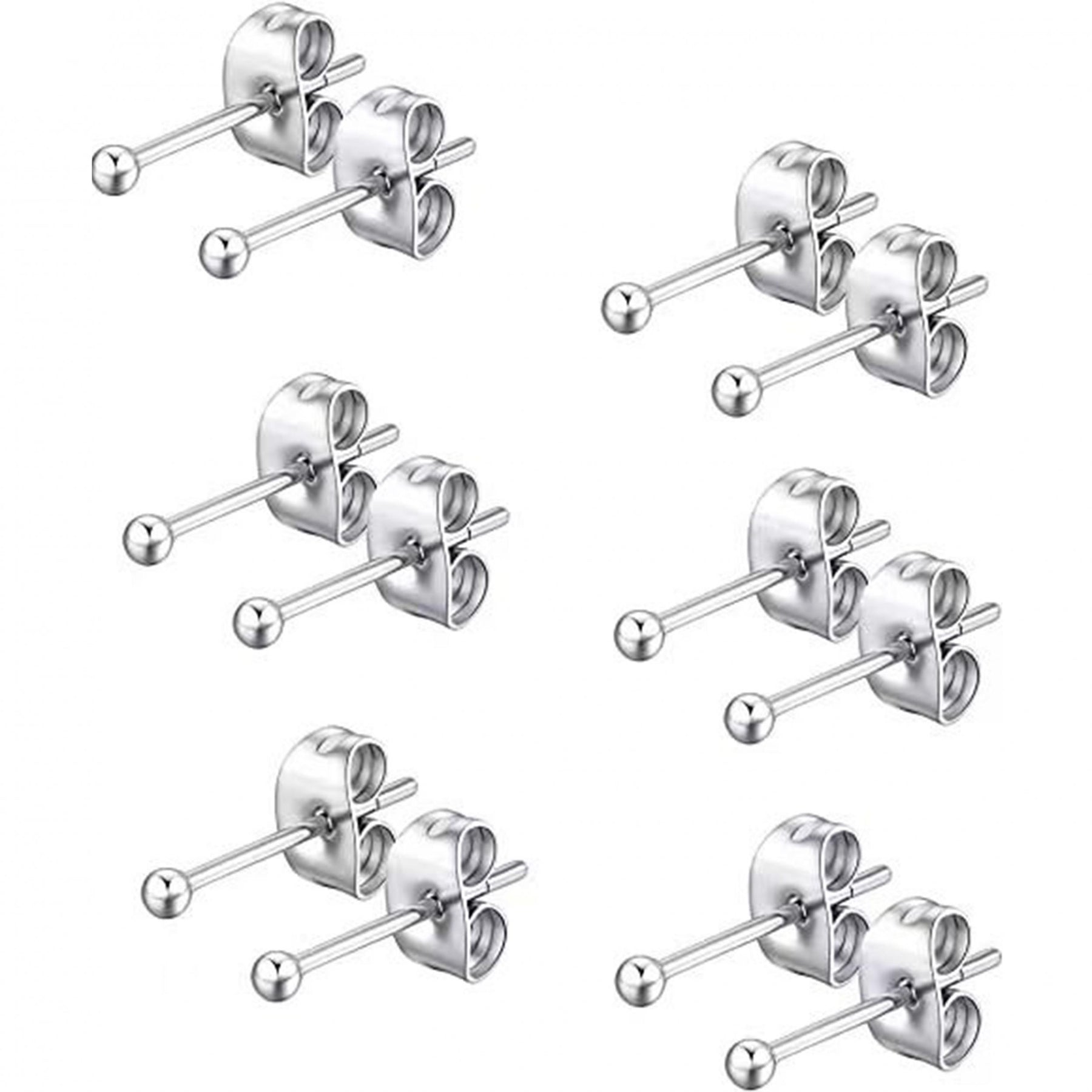 This set includes 12 butterfly buckle stud earrings made of stainless steel. Each earring is 2-3mm in size and hypoallergenic, perfect for sensitive ears.