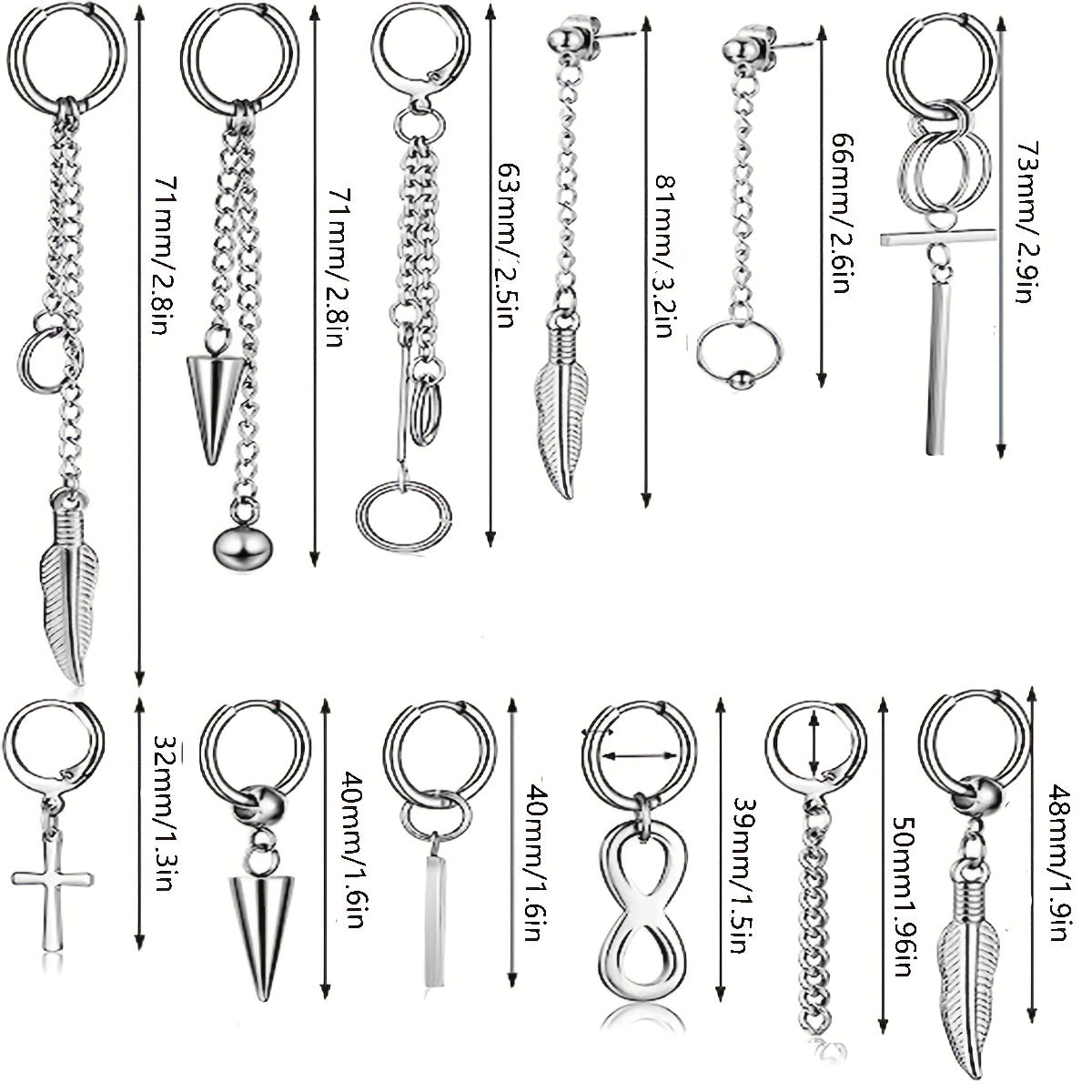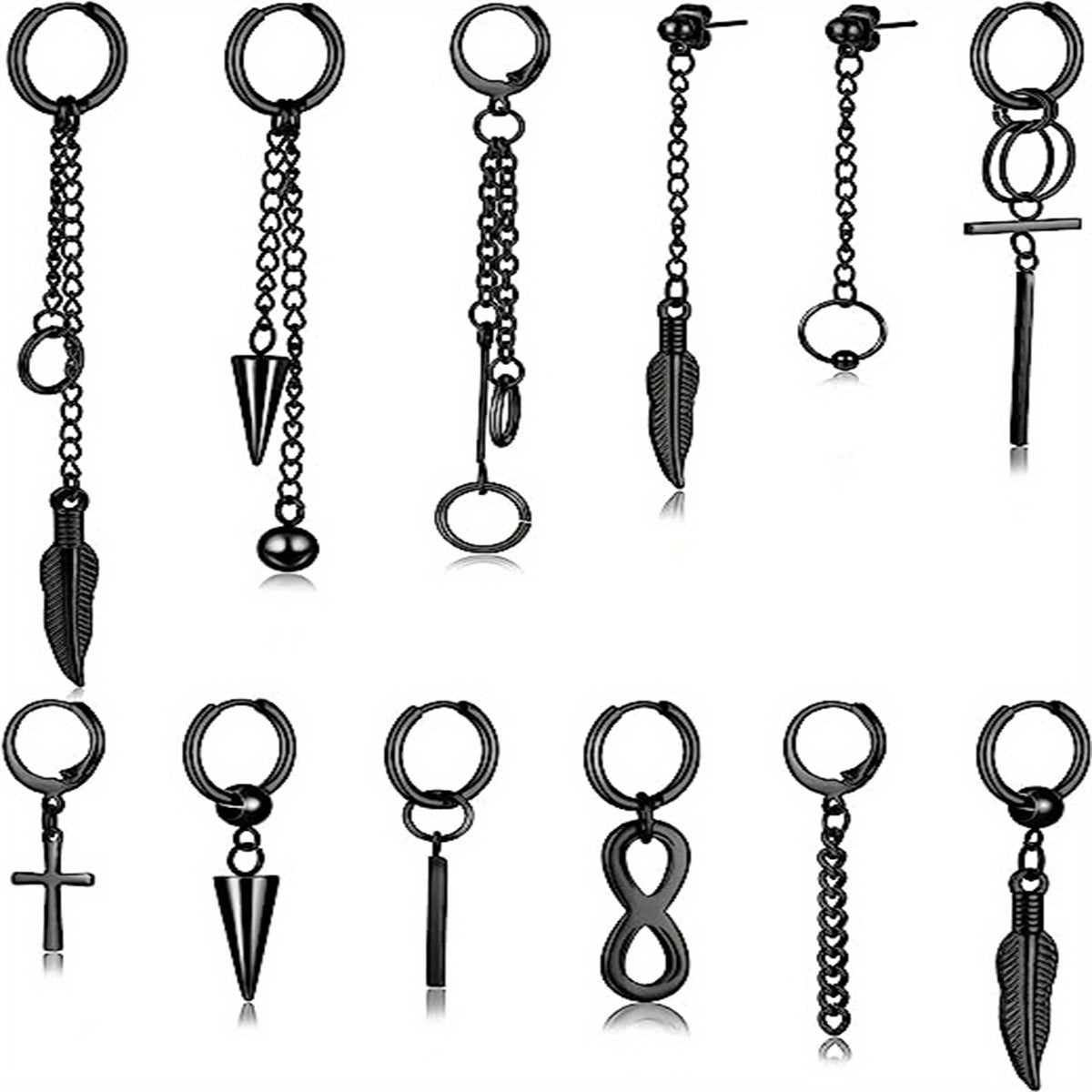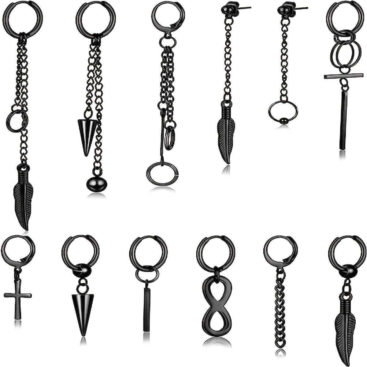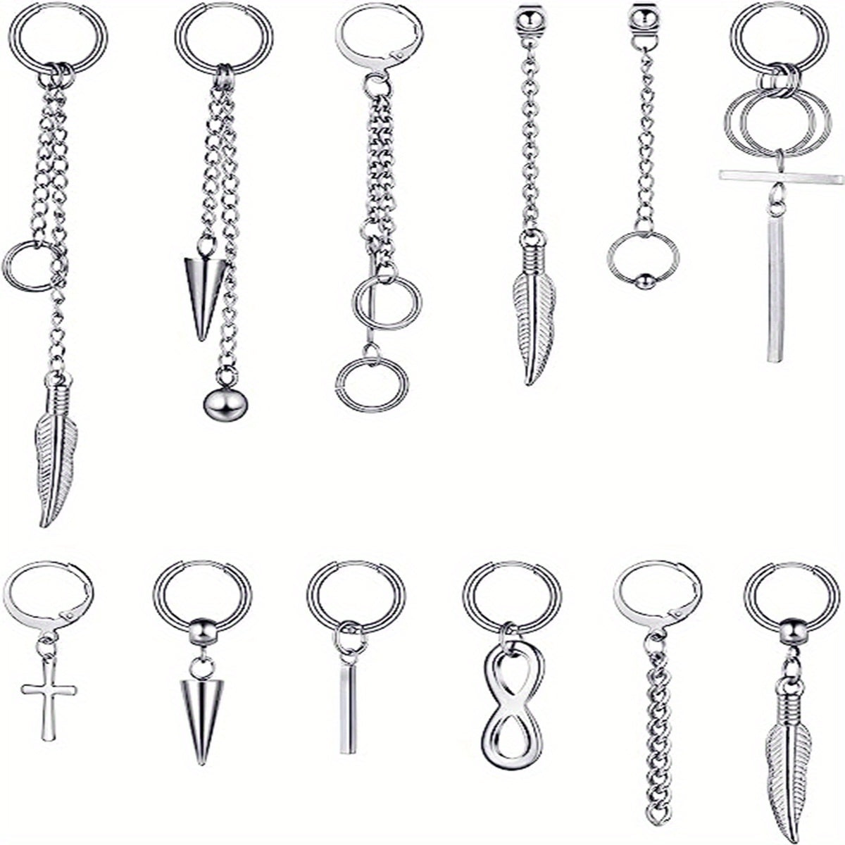 This set includes 12 pairs of stainless steel hoop pendant earrings perfect for couples. These earrings are stylish and durable, suitable for everyday wear.