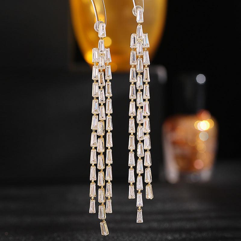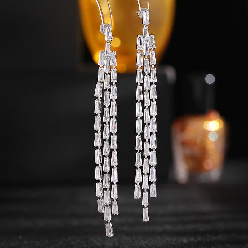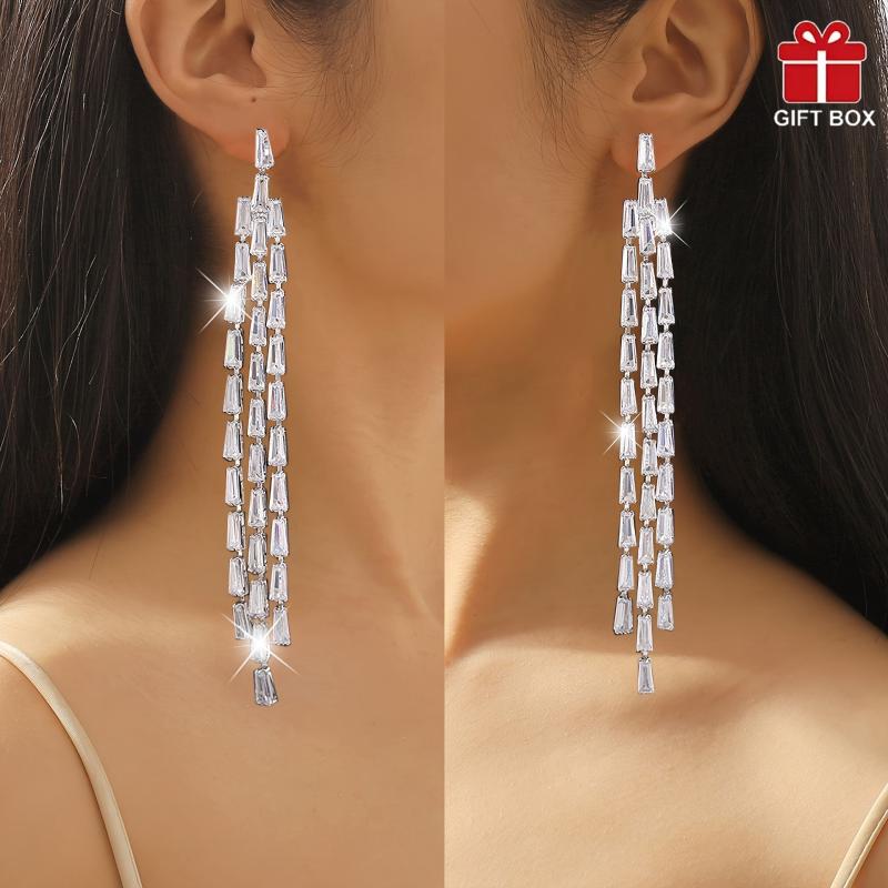Add a touch of elegance to your look with these stunning dangle earrings featuring cubic zirconia stones. Perfect for weddings, banquets, or everyday wear. Makes a great Valentine's Day gift.