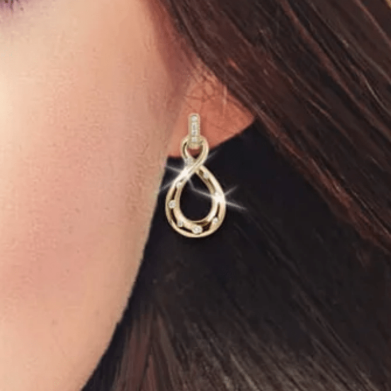 Add a touch of elegance to your outfit with these stunning 14K plated copper earrings adorned with sparkly synthetic zirconia. Perfect for weddings, parties, and all seasons.