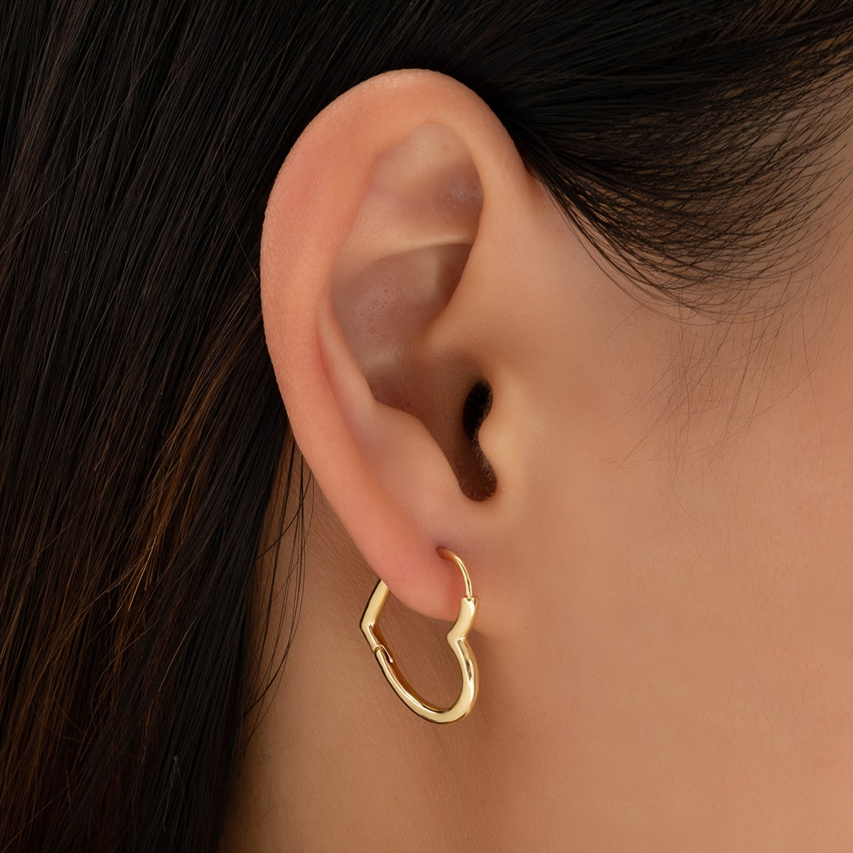 These heart hoop huggie earrings are plated with 14K gold, making them a classic and minimalist accessory for women, ladies, and girls. They make a great birthday gift for a loved one.