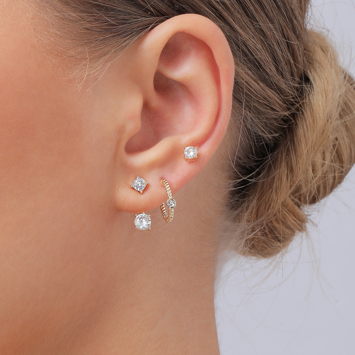 Elegant stud earrings set featuring 3 pairs of 14K plated zircon earrings. Perfect for women and girls for any occasion.