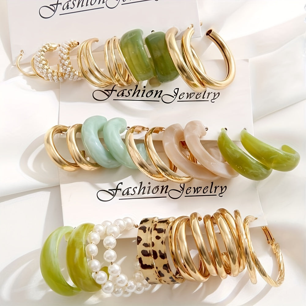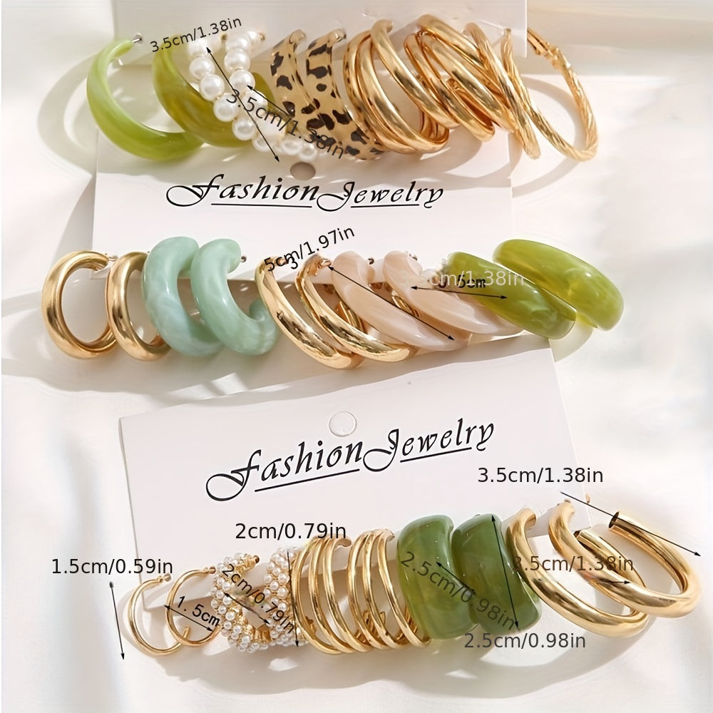 Enhance your accessory collection with this set of 15 pairs of C shape hoop earrings. Each pair features a minimalist design and is made of high-quality alloy with 18K gold plating, making them a perfect gift for females.