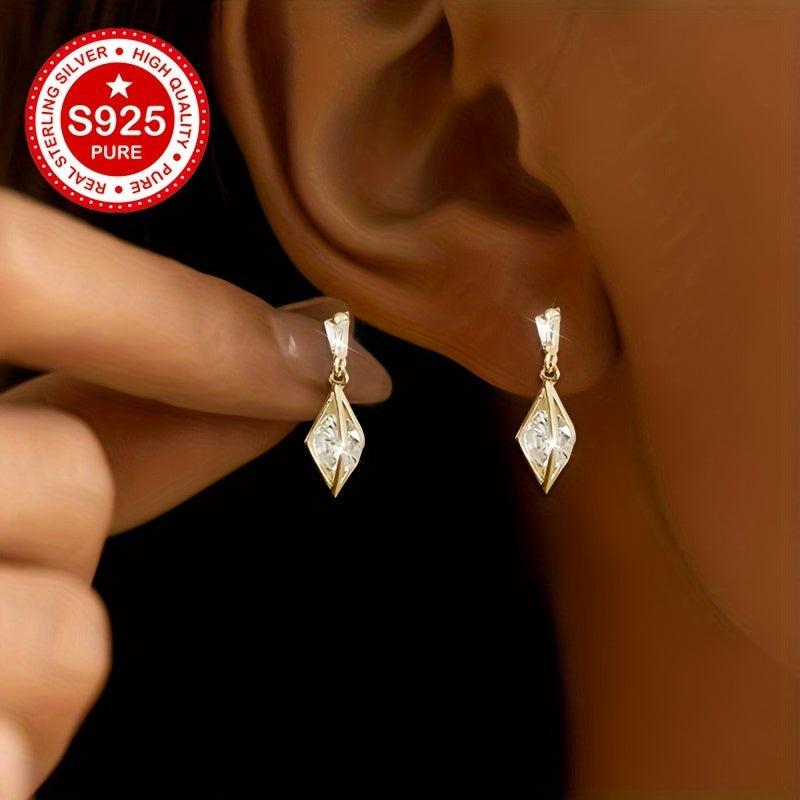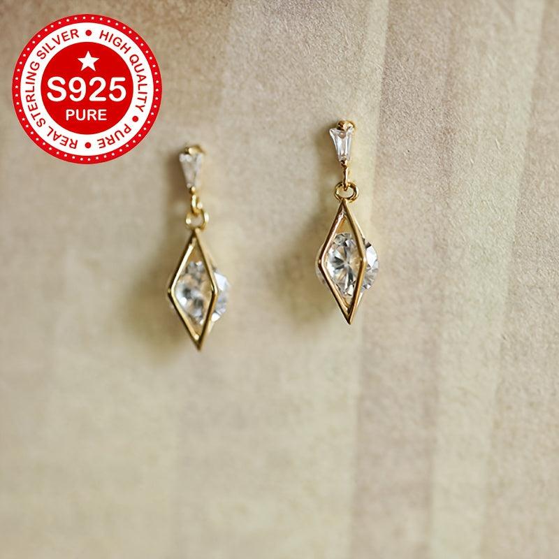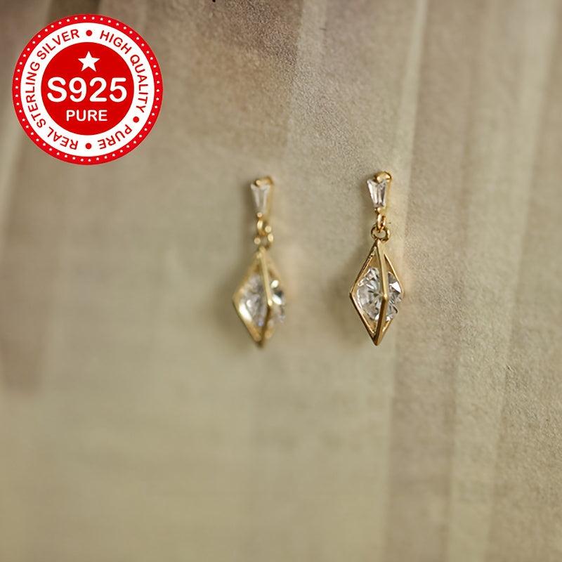 These stud earrings are made of 925 sterling silver with 18K gold plating and feature synthetic cubic zirconia in a geometric faceted design. They are hypoallergenic and lightweight, weighing only 1.81g. Perfect for everyday wear.
