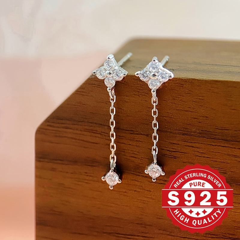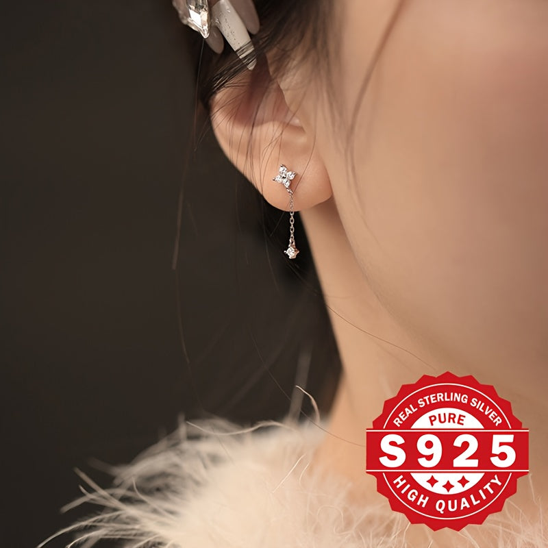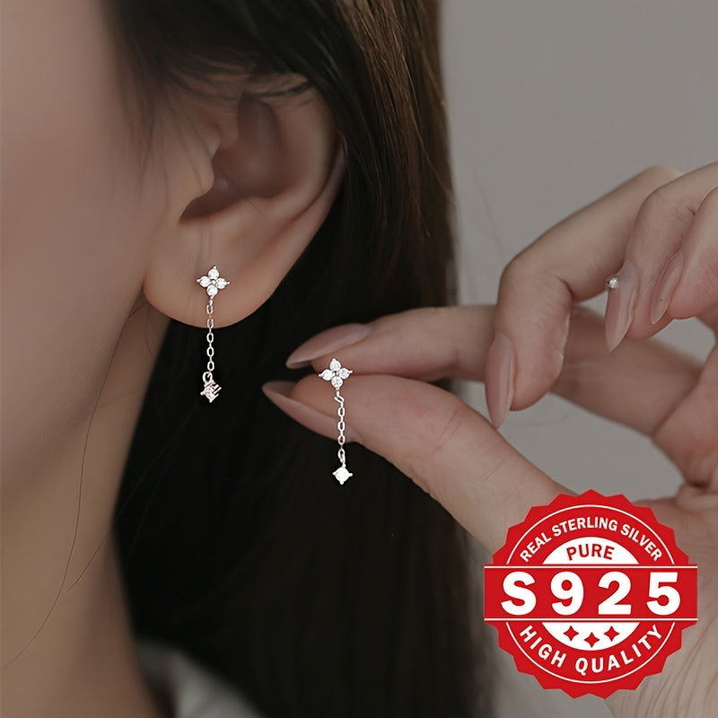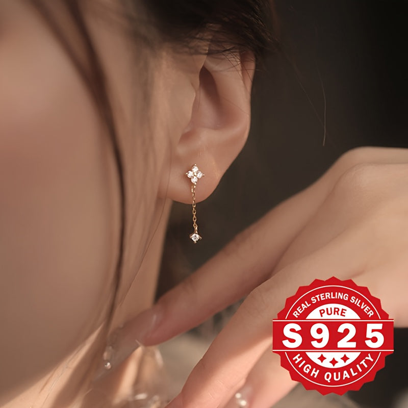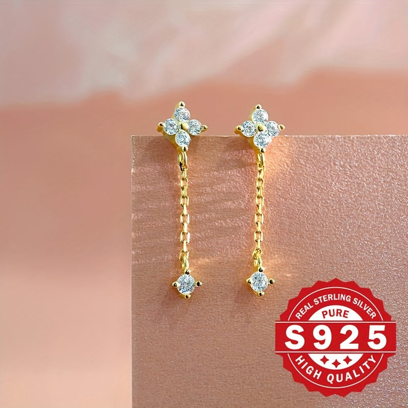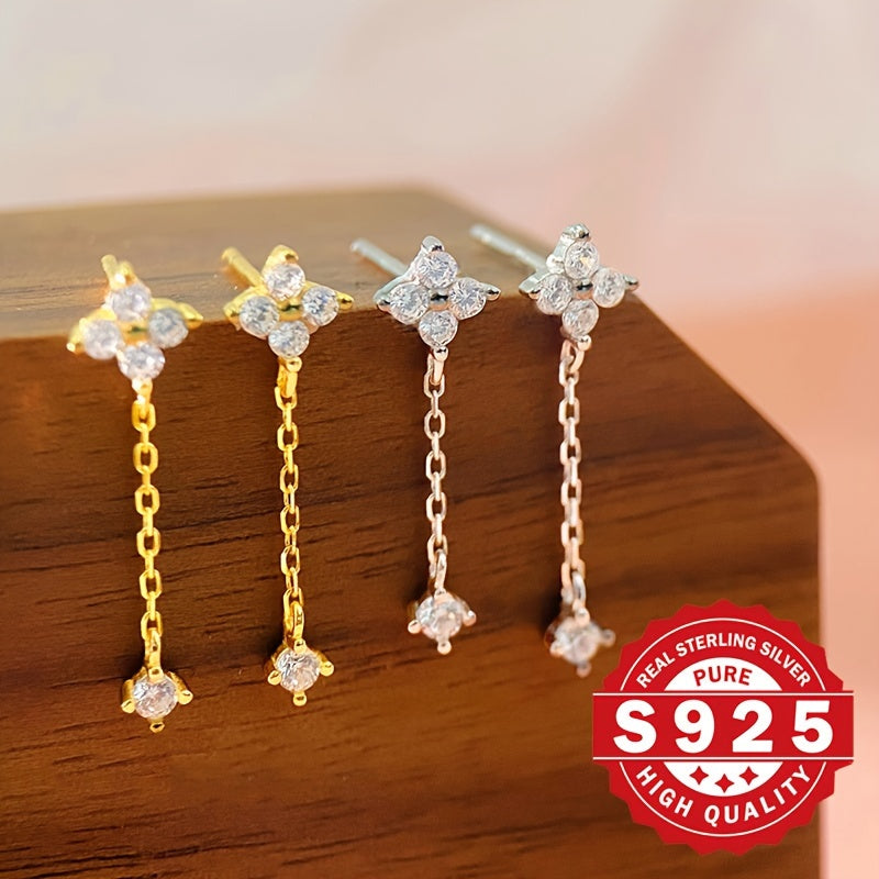 Add a touch of elegance to your look with these stunning four leaf stud earrings. Made with 18K gold plated 925 silver and sparkly zirconia, these earrings are lightweight and hypoallergenic, perfect for sensitive ears.
