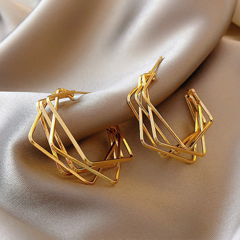 These big golden huggie earrings are unique and perfect for adding personality. The multilayer design creates a bold and trendy look that will make a statement.