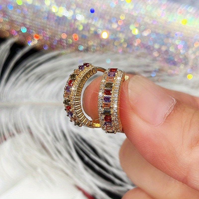 Add a touch of elegance to your look with these stunning hoop earrings featuring a rectangle cut topaz stone accented with sparkling zircon stones. Perfect for bridal, wedding, or party wear.