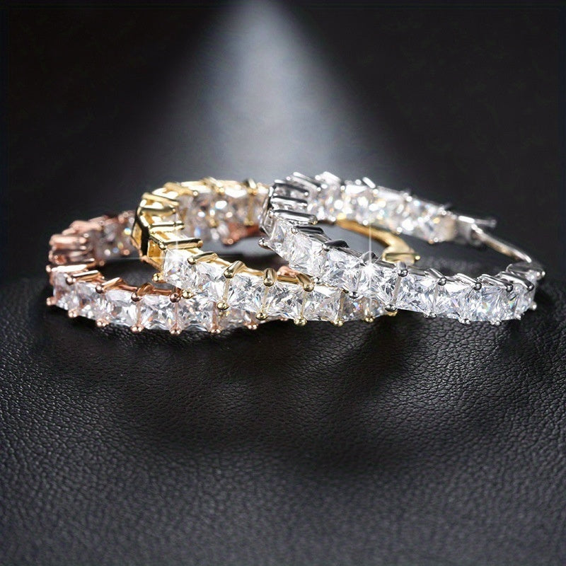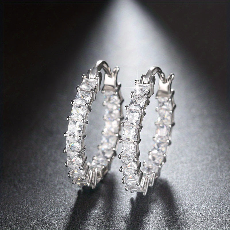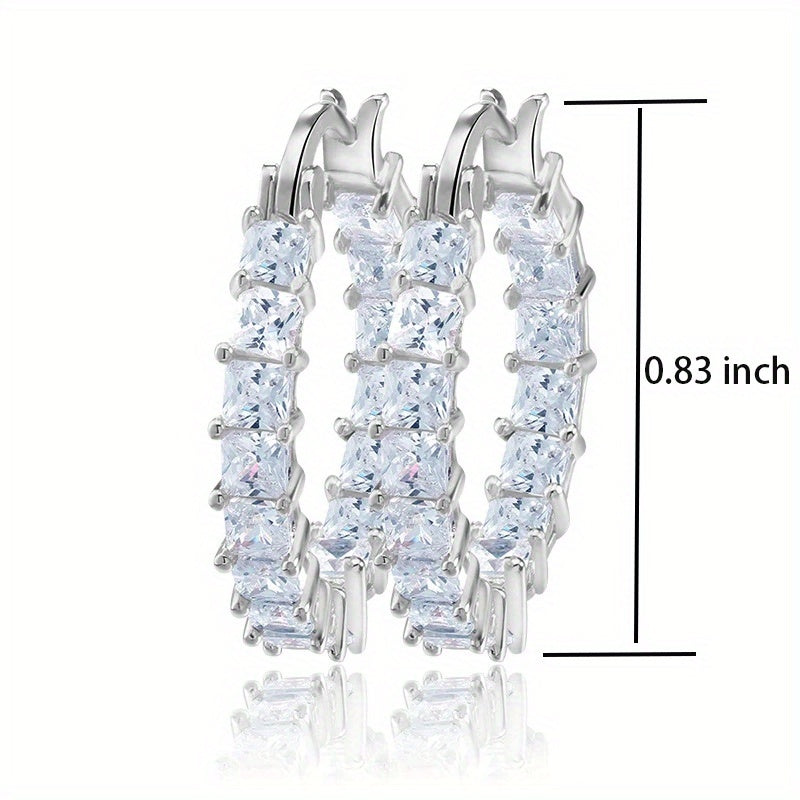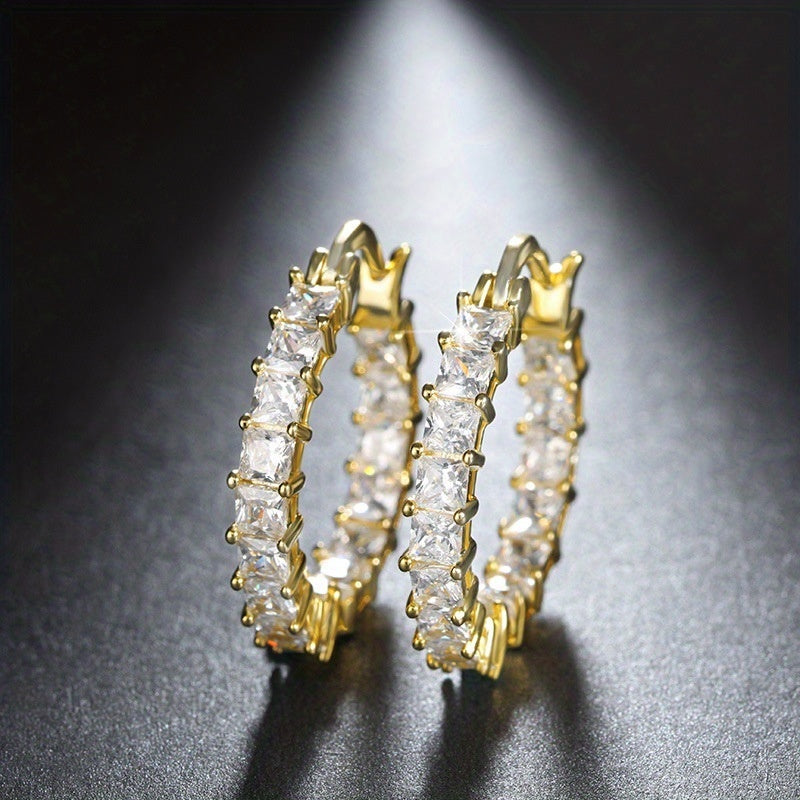 Add a touch of elegance to any outfit with these stunning 18K plated hoop earrings featuring dazzling zirconia stones. Perfect for parties or special occasions.