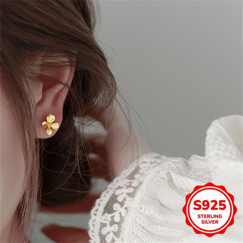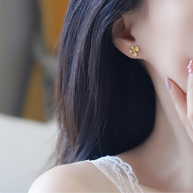 Add a touch of elegance with these frosted temperamental style gardenia flower studs. Made of pure silvery material, these sweet earrings are perfect for everyday wear.