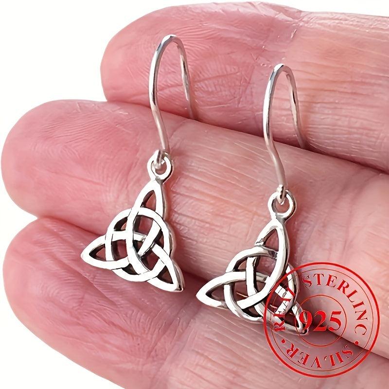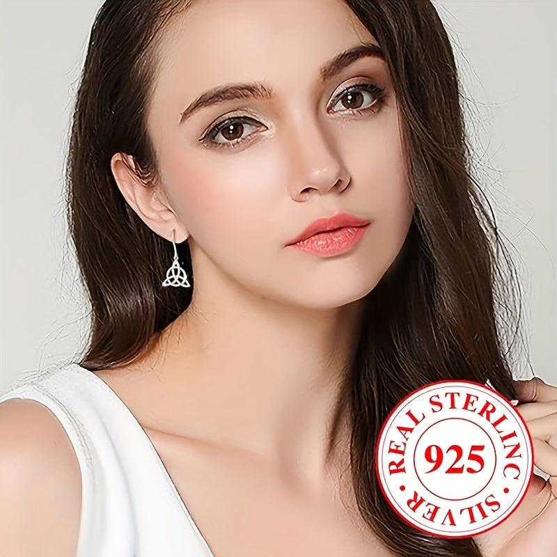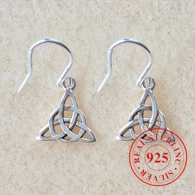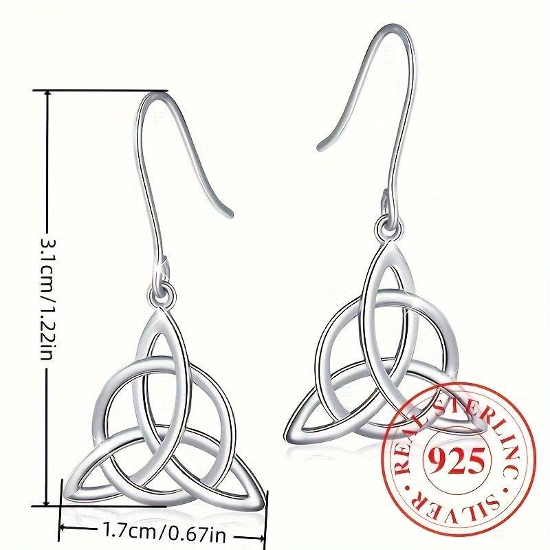 Elegant 925 pure silver retro Celtic knot geometric pendant earrings for Women's engagement, party, and daily casual wear.