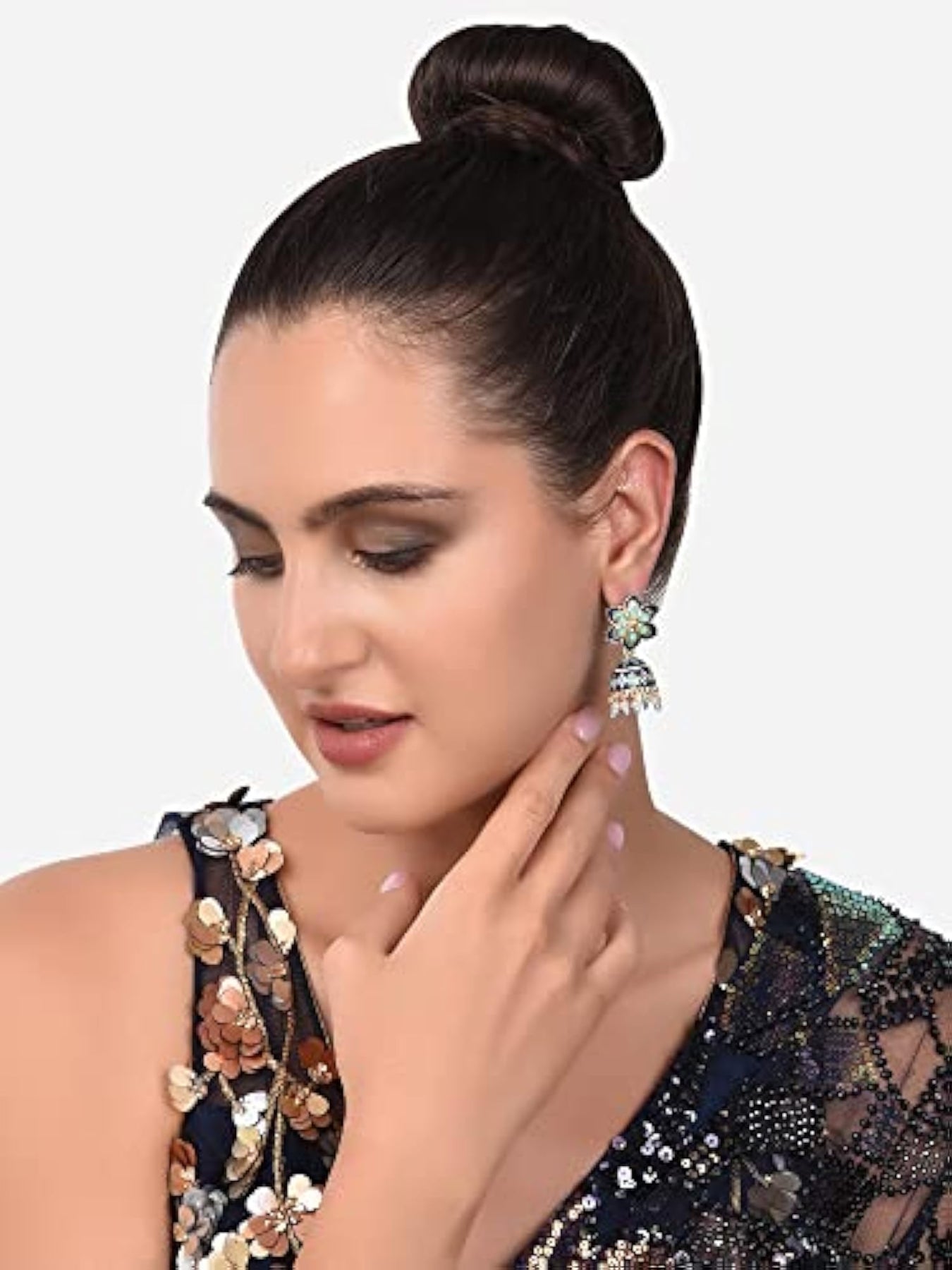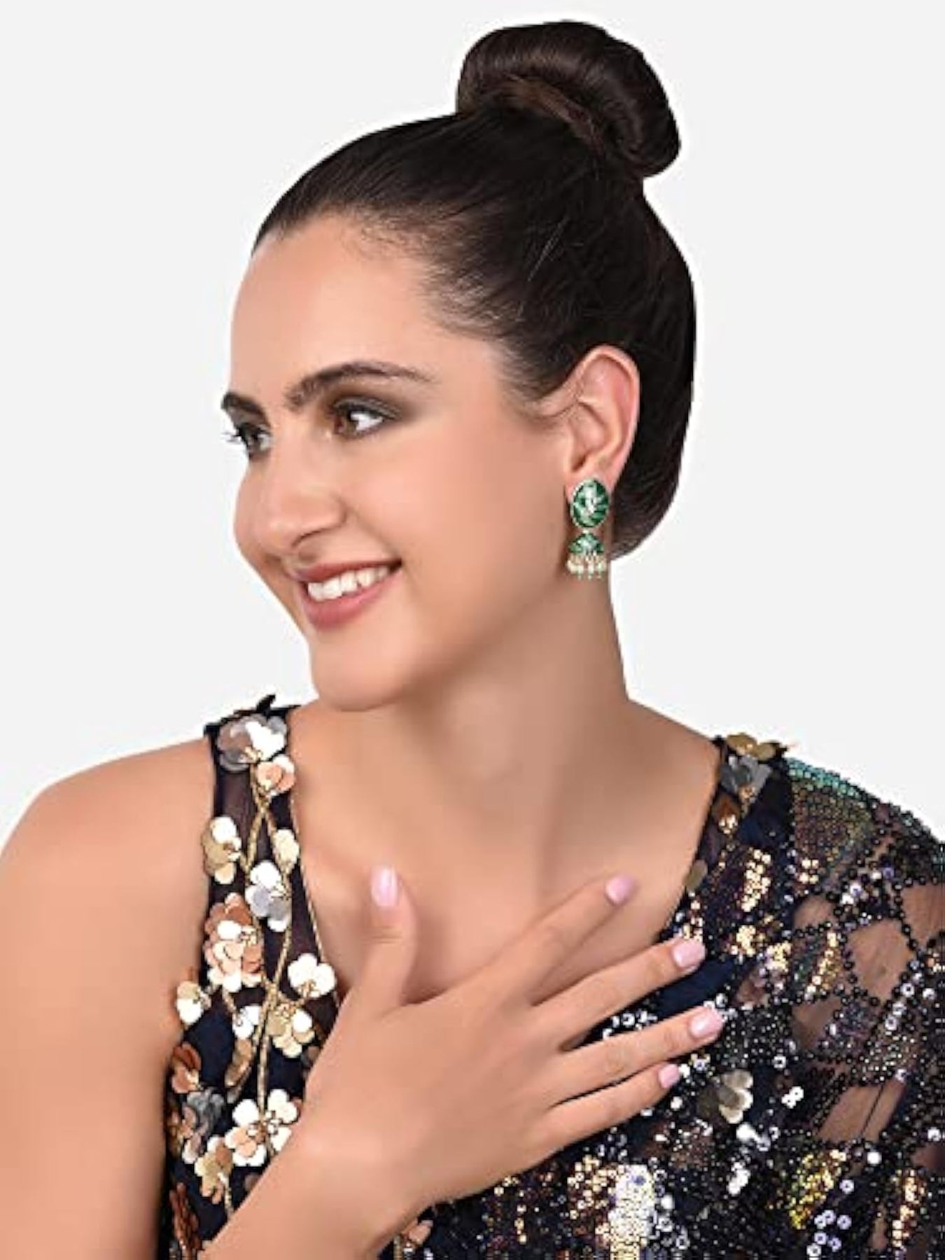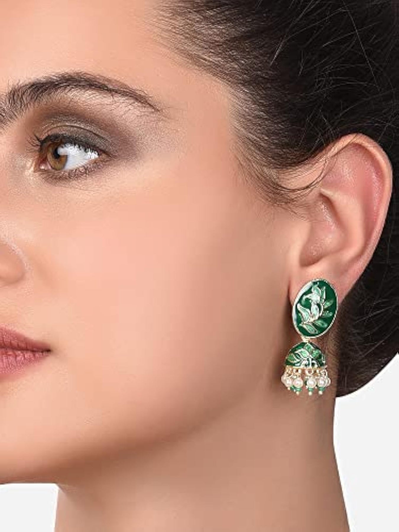 Elegant set of 2 ethnic jhumki earrings in green and meenakari design. Perfect for adding a touch of charm to your outfit.