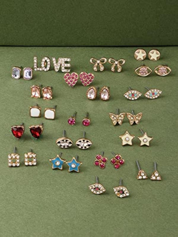 Elevate your everyday look with this set of 20 dazzling stud earrings designed for casual wear. These stylish earrings are versatile and perfect for adding a touch of glamour to any outfit.