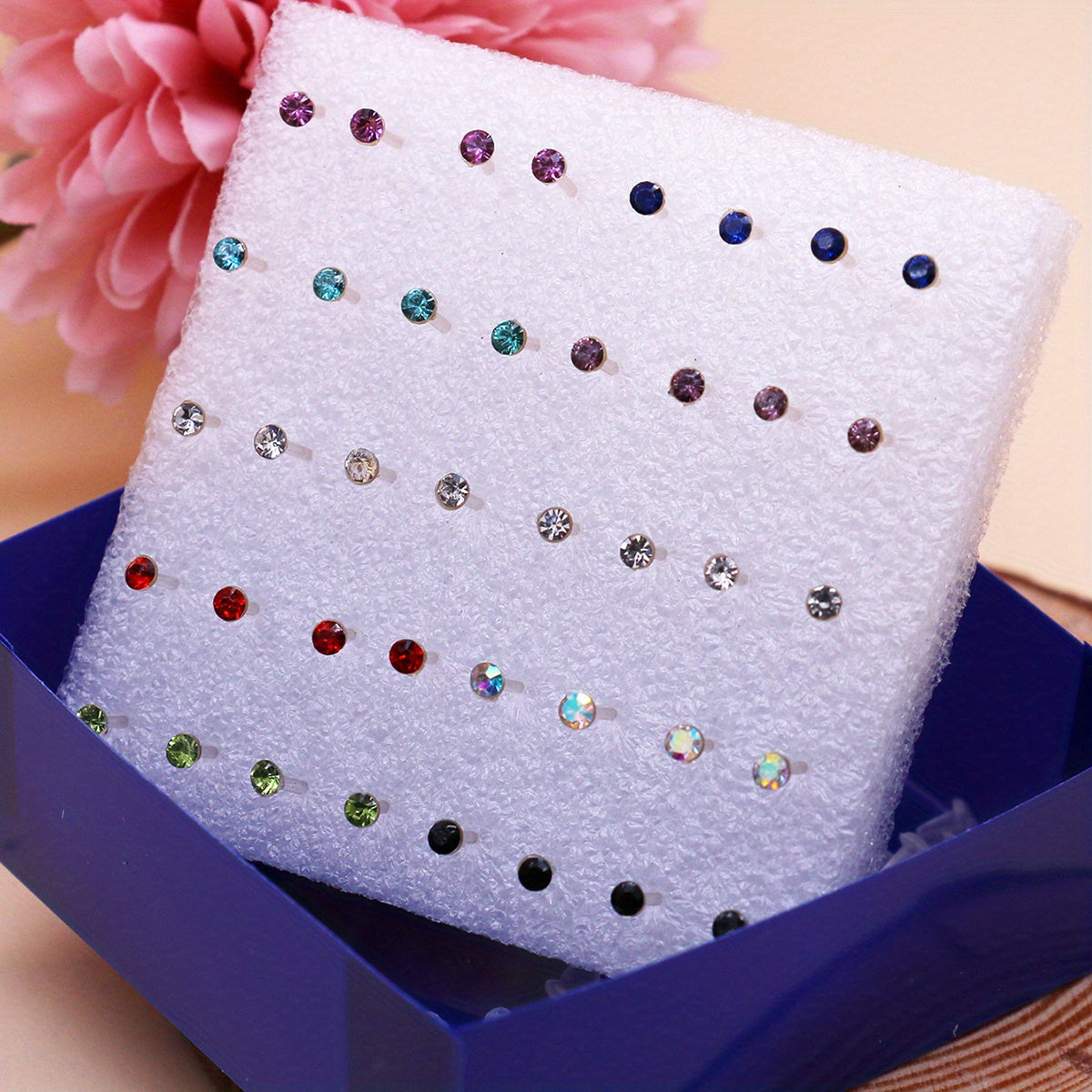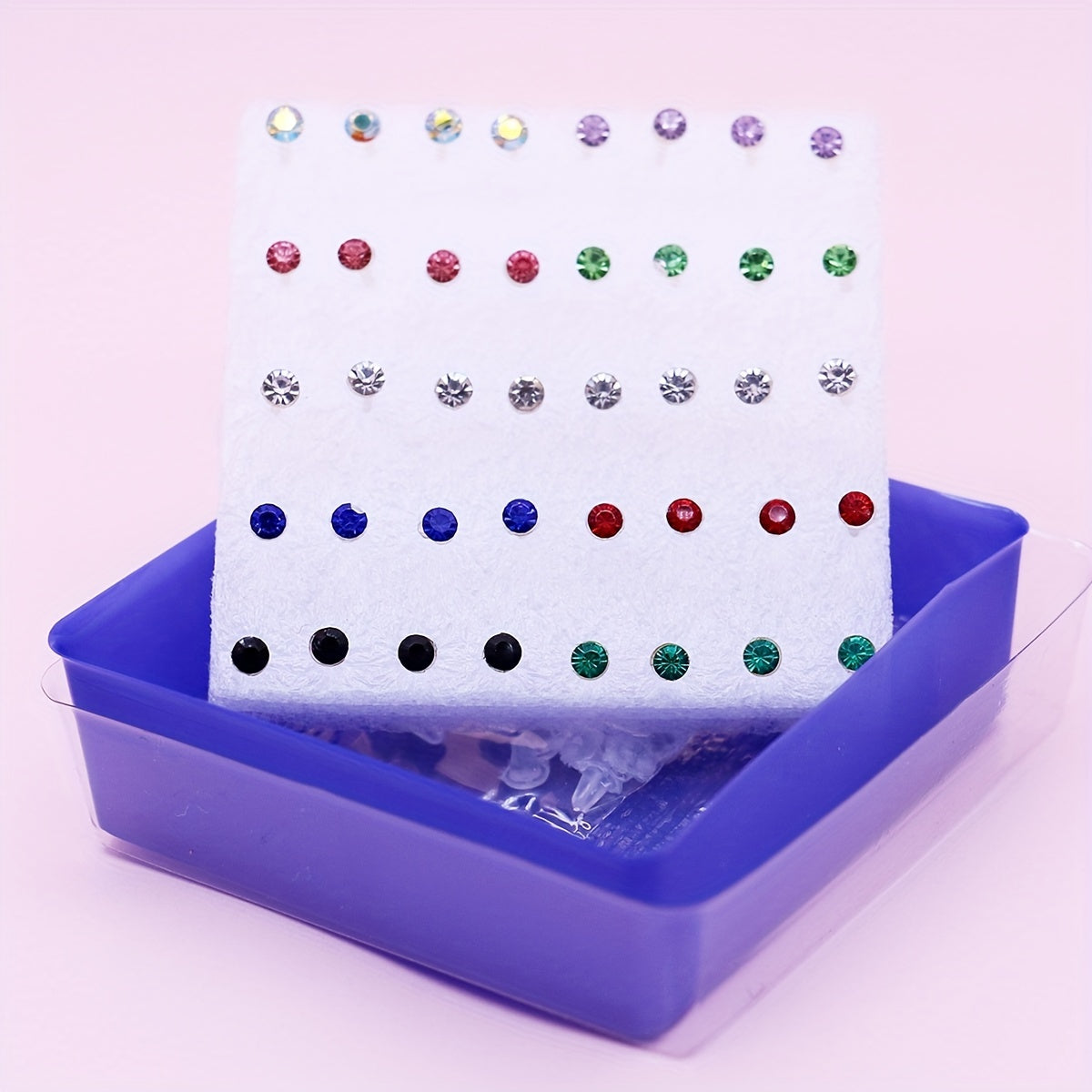 Add a touch of sparkle with this set of 20 pairs of colorful rhinestone stud earrings. Perfect for daily casual wear, these earrings feature a minimalist design that adds a delicate and elegant touch. Ideal as a gift for women and girls.
