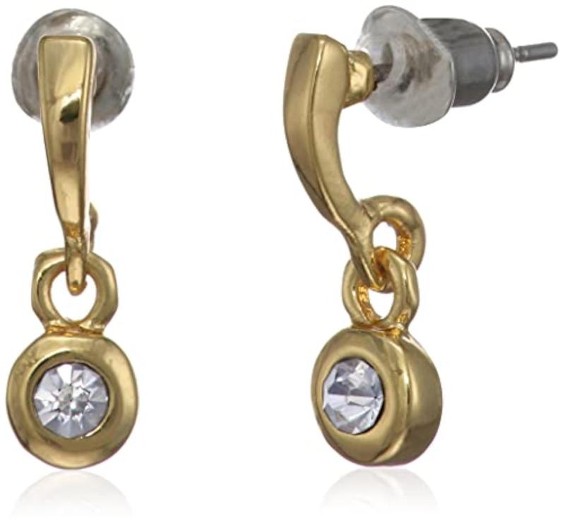 Elegant dangle earrings featuring stone drops and Austrian crystals. Plated with 24 Kt gold for a luxurious look.