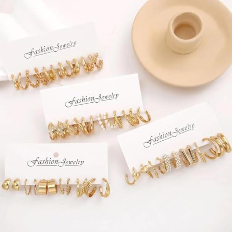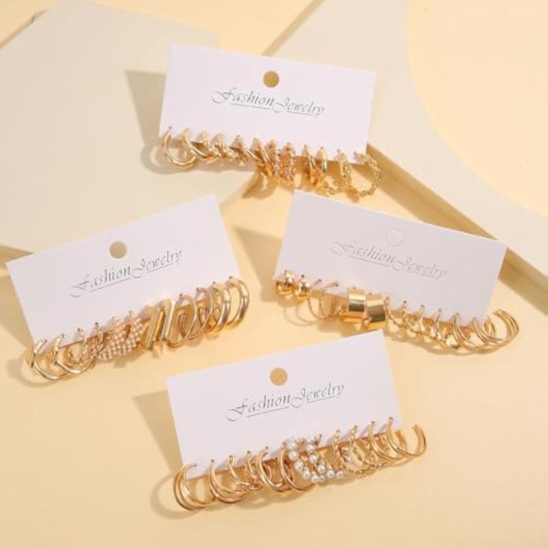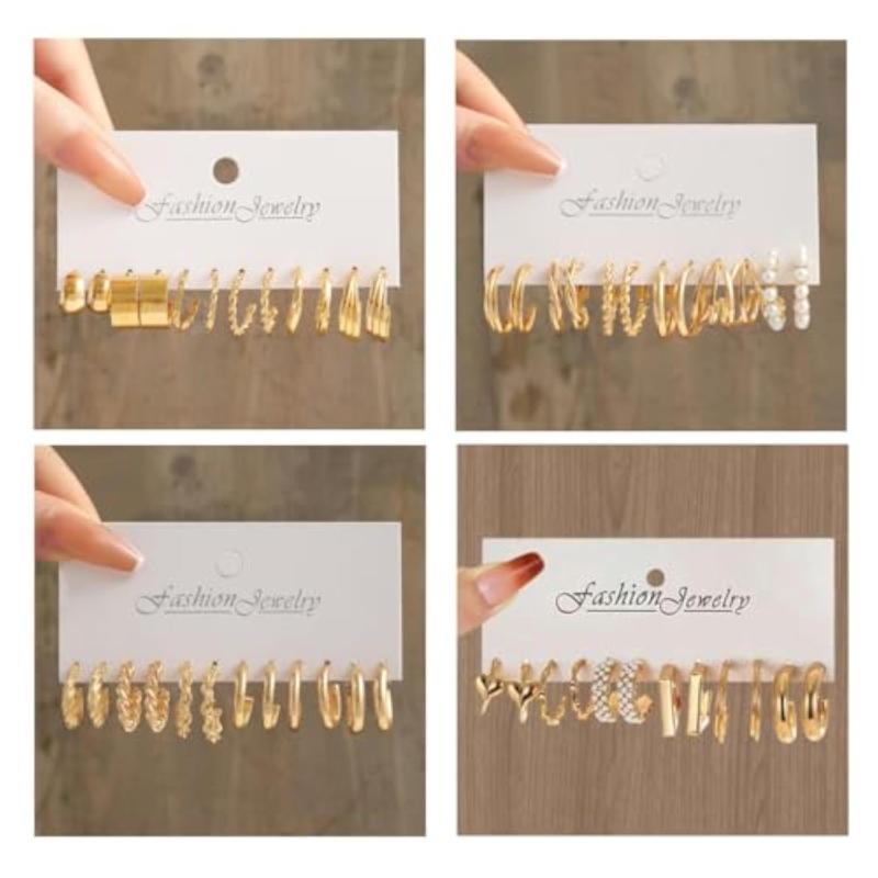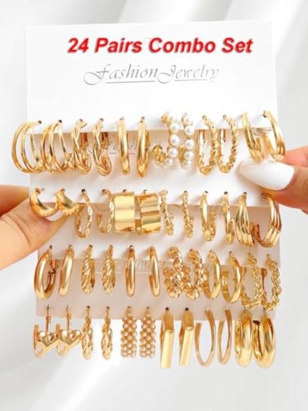 Enhance your accessory collection with this set of 24 pairs of stylish hoop earrings. Perfect for everyday wear or special occasions.